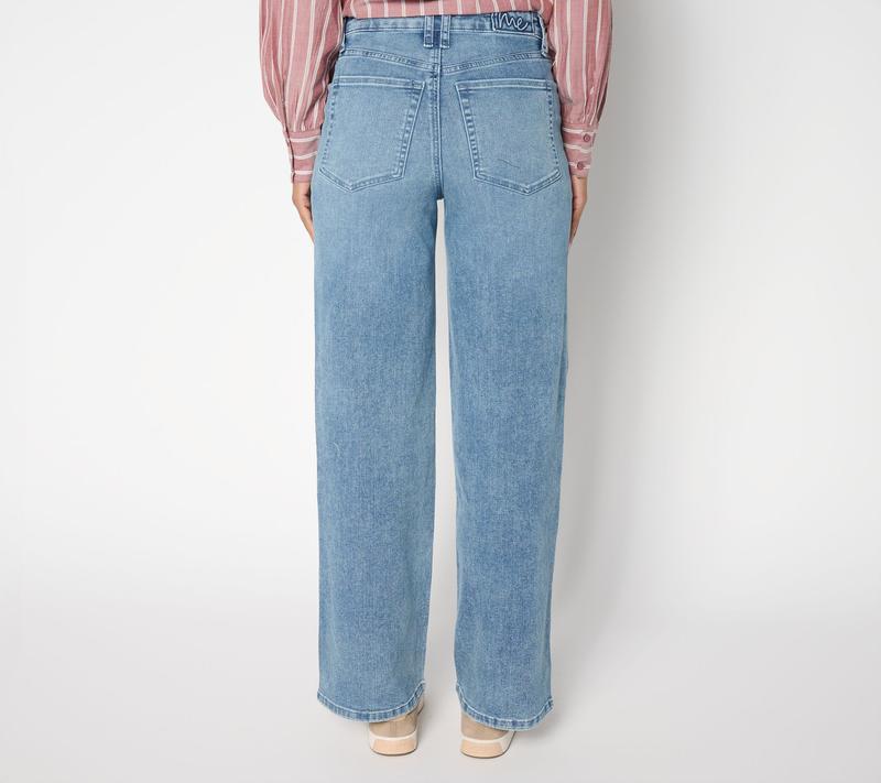 Me by Jennie Garth Petite Indigo Frayed Hem Wide Leg Jeans