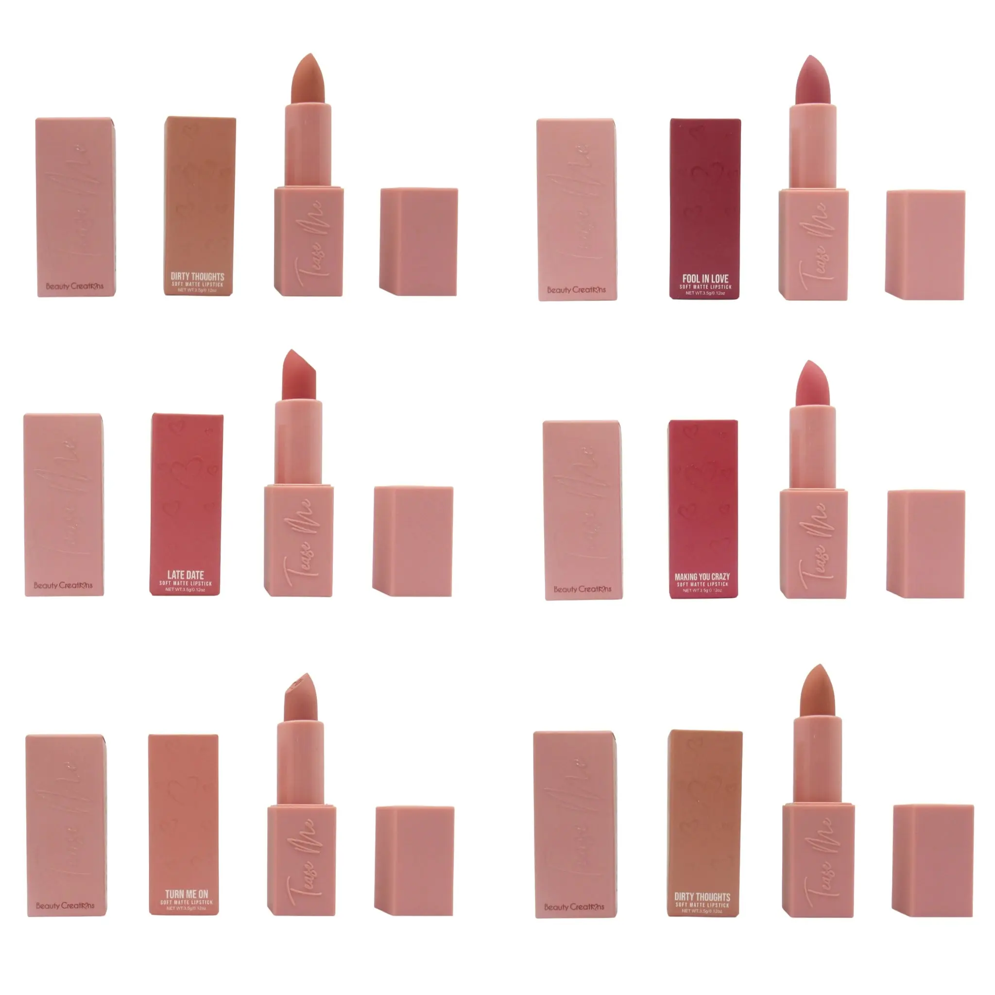 5. Lápiz Labial Tease Me Beauty Creations - Venta al por Mayor Display 96 Unidades + 16 Probador (TML)