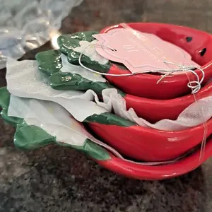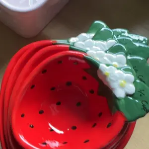 These ceramic strawberry measuring cups are absolutely perfect 👌 they made the strawberry decor i currently have in my kitchen. I was to excited to find them in the tiktok shop at HSN.