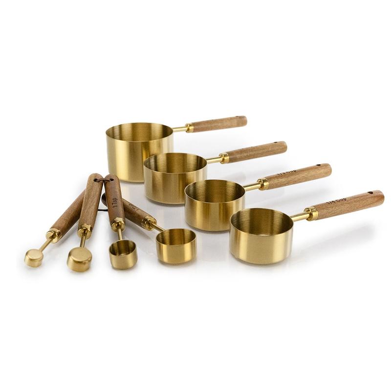 Everything Kitchens Modern Essentials Gold Measuring Cups & Spoons with Wood Handles (Set of 8) Features: