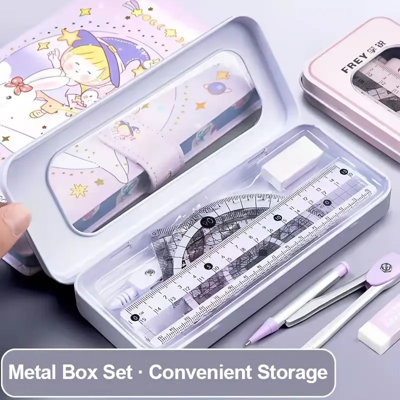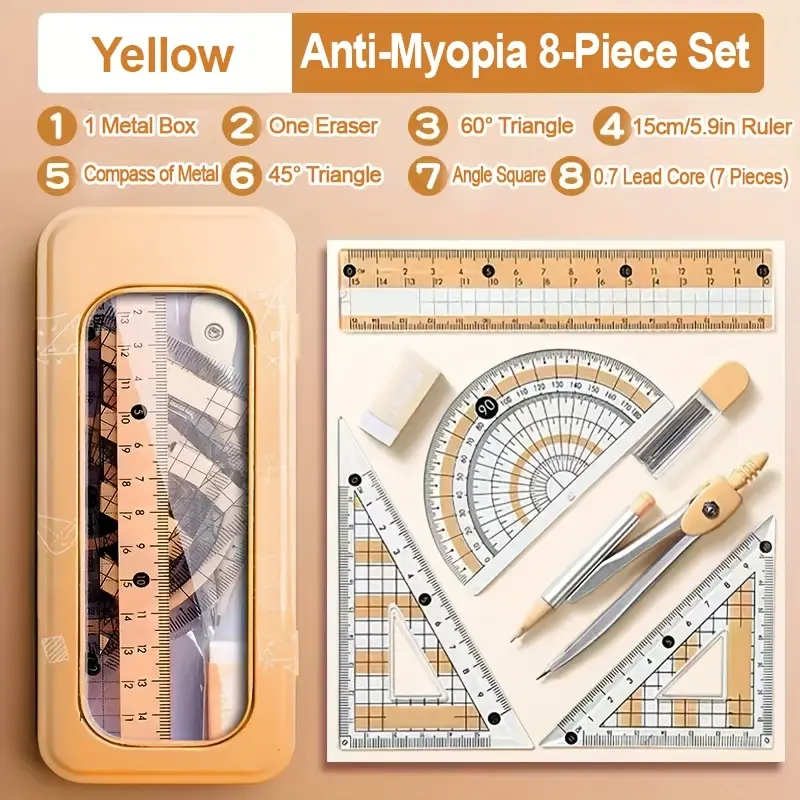 5. 8pcs Set of Measuring Rules for Students Including Compass Measuring Angle Ruler Triangular Ruler Measuring and Drawing Complete Set of Measuring and Stationery Gift Package