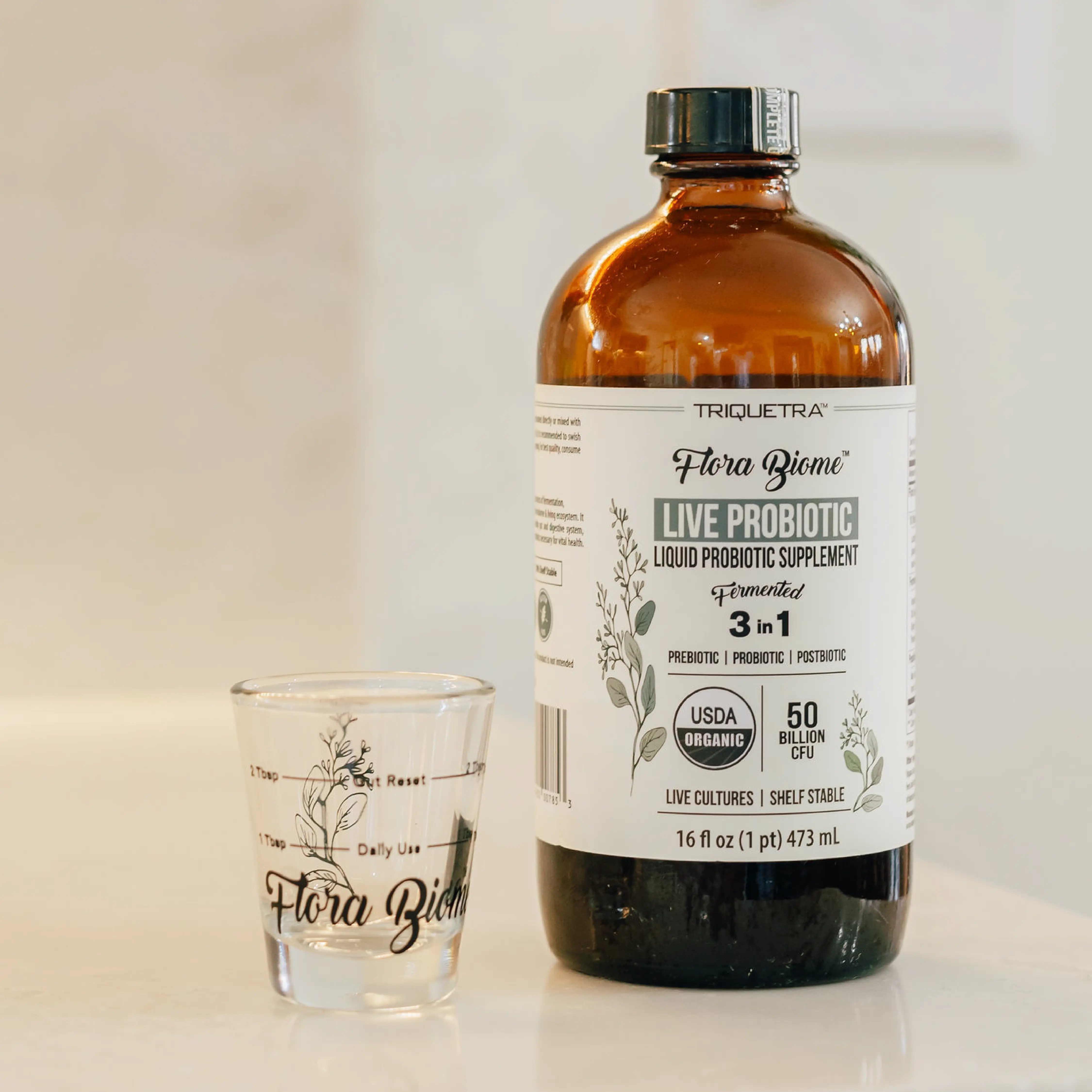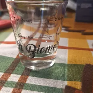 I love this fancy glass to drink my Flora Biome with. And it's not expensive, so I just added it when I bought the Flora Biome. It came packaged inside with the bottle. Now I don't use my kids medicine plastic cups. It was well packaged. I made a video with the glass, go check it out in my page 😁