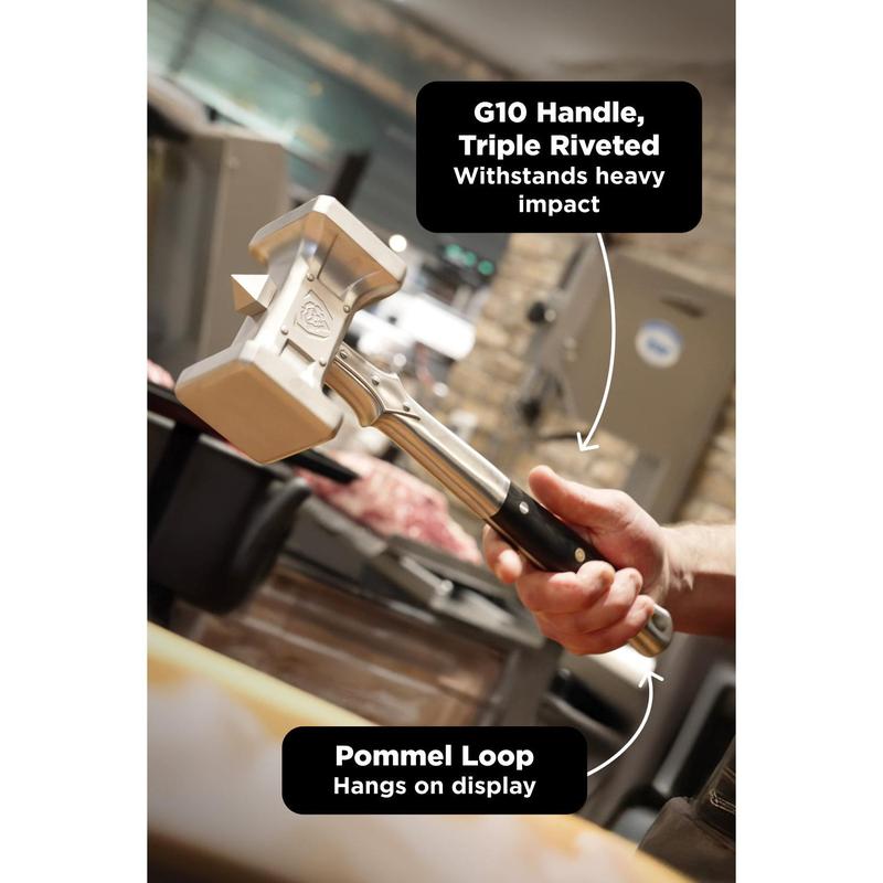 A true kitchen warrior needs more than just sharp blades in their arsenal. Introducing the Dalstrong War Hammer, a massive 3.9lb, 304 Stainless Steel meat tenderizer with one mission: pumping up the flavor. Leverage the weight and precision of 100 pyramidal tenderizers to pound even the toughest cuts of meat into savory submission. Thanks to the premium G10 handle, you’ll have no problem handling its heft — allowing you to effortlessly enhance the natural flavor of your prey.