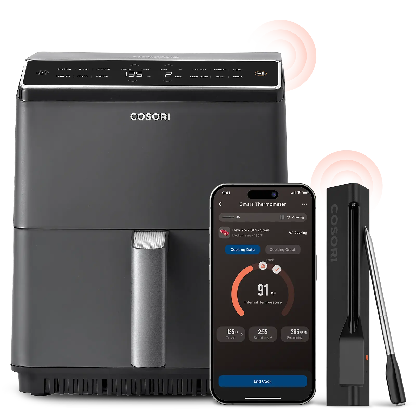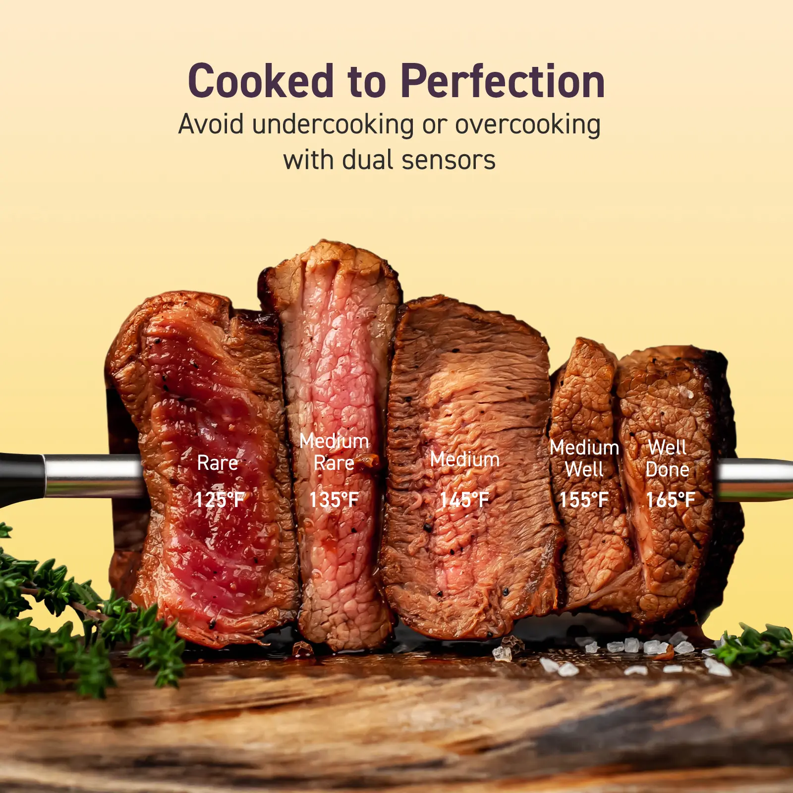 Never Ruin a Meal: Dual sensors and ±1.8°F accuracy prevent undercooking or overcooking, ensuring consistent, reliable results