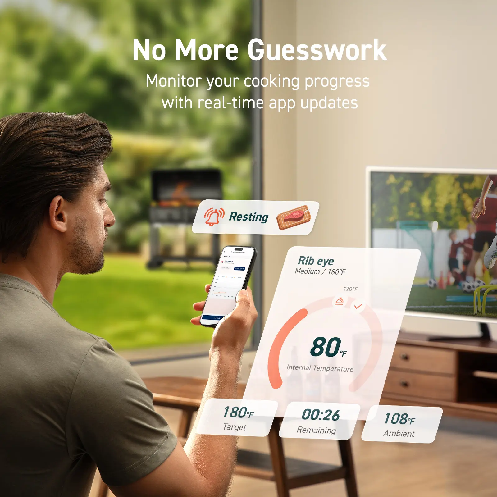 Cooking, Not Looking: Monitor with the app for perfect doneness, eliminating guesswork and ensuring precise results