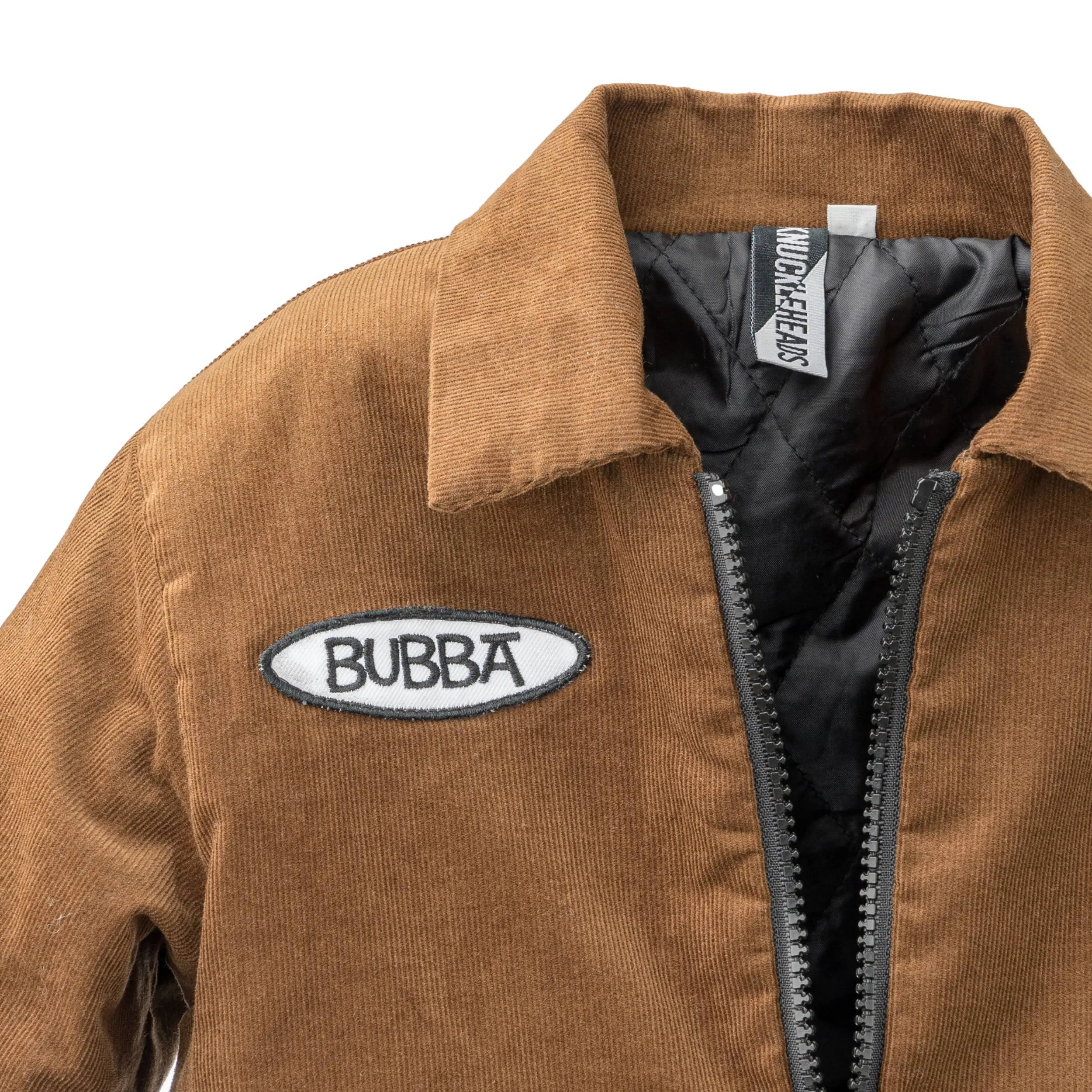 The Mechanic Jacket with Patch "Bubba" from Knuckleheads Clothing is the perfect choice for any little gearhead in your life. Made from durable materials, this jacket is built to withstand the rough and tumble play of kids. The patch on the front features the writing "Bubba," making it a fun and unique choice for any young mechanic or car enthusiast. The jacket also has multiple pockets for storing toys and other essentials, making it practical as well as stylish. Whether your child is helping out in the garage or just running around town, this jacket is sure to become a go-to choice.
