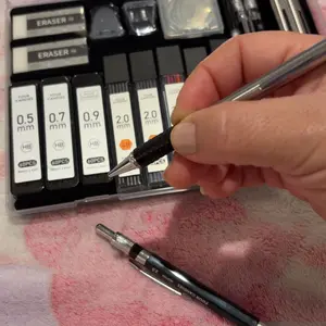 ·【5 Different Pencil Models】The mechanical drafting pencil set covers 5 different models. 0.3, 0.5, 0.7, 0.9mm can be used to draw different line thicknesses. The 2.0mm mechanical pencil can be rotated to the hardness you want in the visible hardness window and loaded with graphite lead to draw shadows.