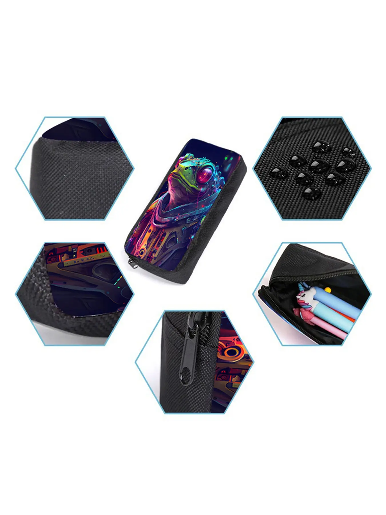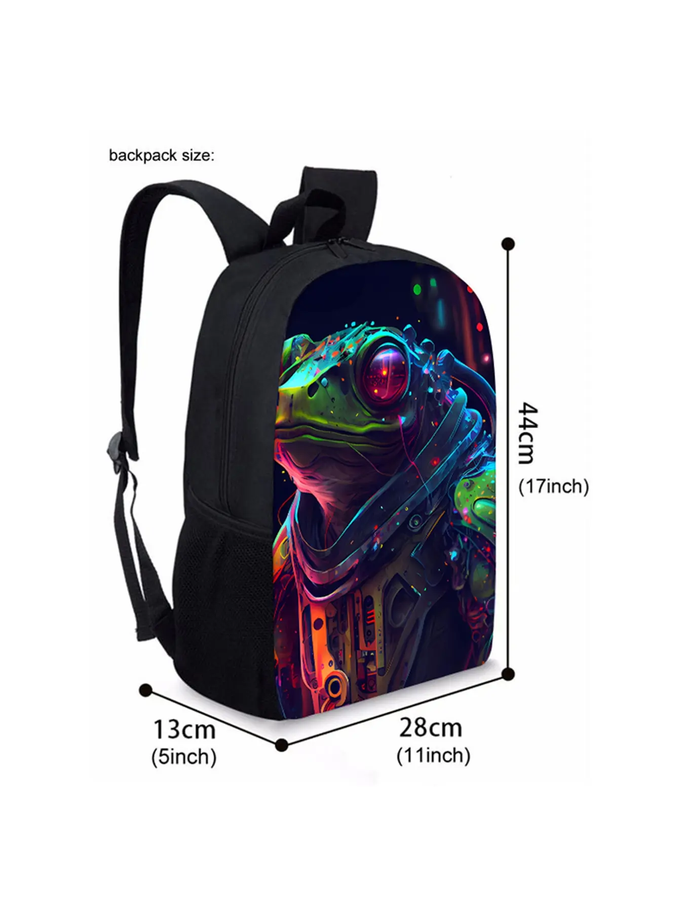 Mechanical frog pattern printed 17-inch backpack three-piece set (single-layer backpack + shoulder strap round lunch bag + single-layer pencil bag)