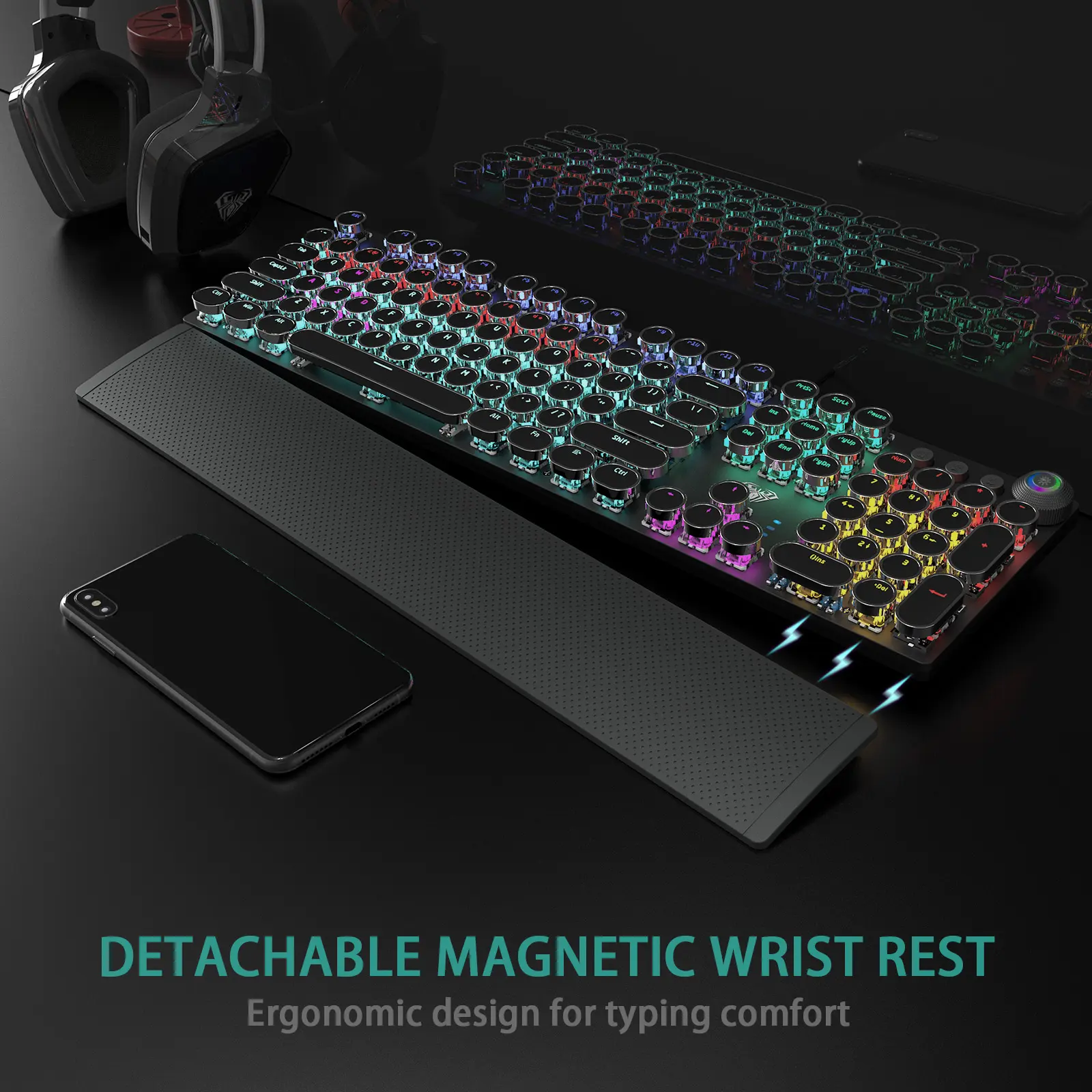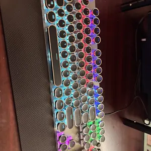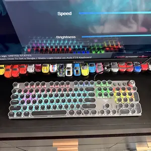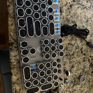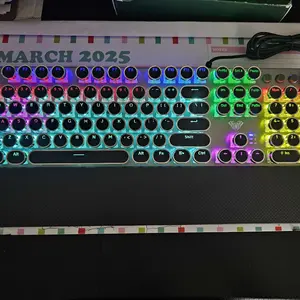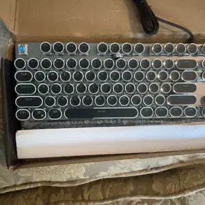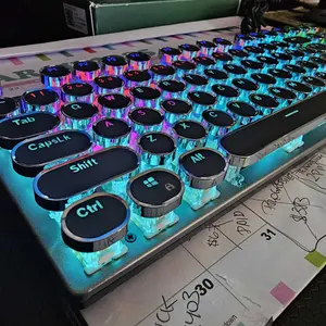 ·Retro Typewriter Style Round Keycaps: Mechanical blue switch offers a quicker and springier response, crisp click sound, precise tactile feedback for ultimate gaming performance. Double-shot injection molded vintage steampunk round keycaps for clear backlight and extreme durability. The stepped floating keycap fit your fingertips perfectly for precise positioning, prevent fatigue and wrong typing. Comes with keycap puller for easy keycaps cleaning