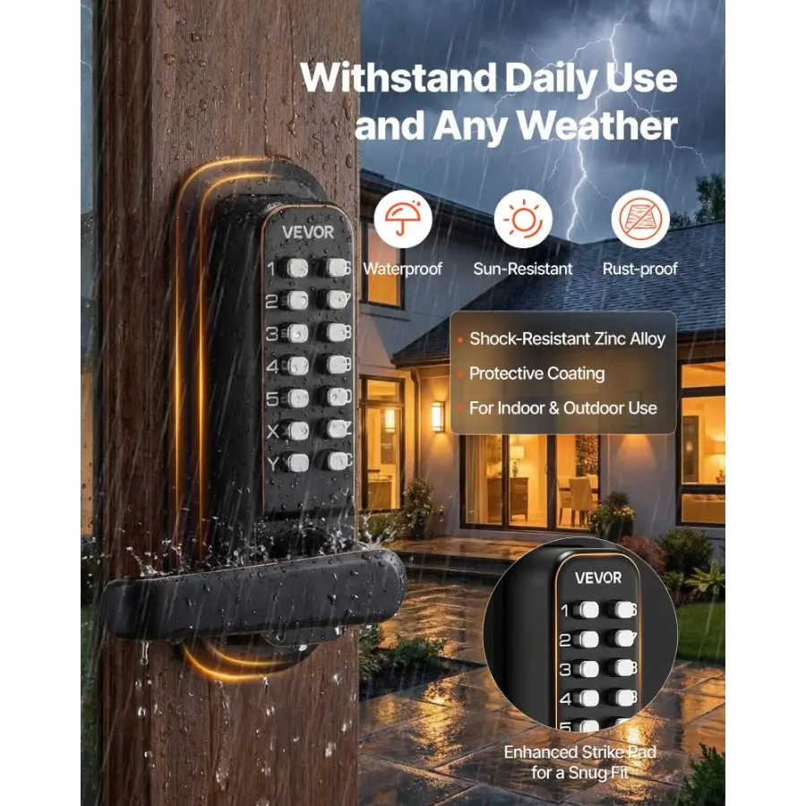 VEVOR Mechanical Keyless Entry Door Lock, 2.0 Code Upgrade, 4-7 Digits Code, Double-Sided Push Button Combination Keypad Door Lock with Pull Handle, Auto Locking, for Garden Gates, Indoor or OutdoorVEVOR Super Brand Day