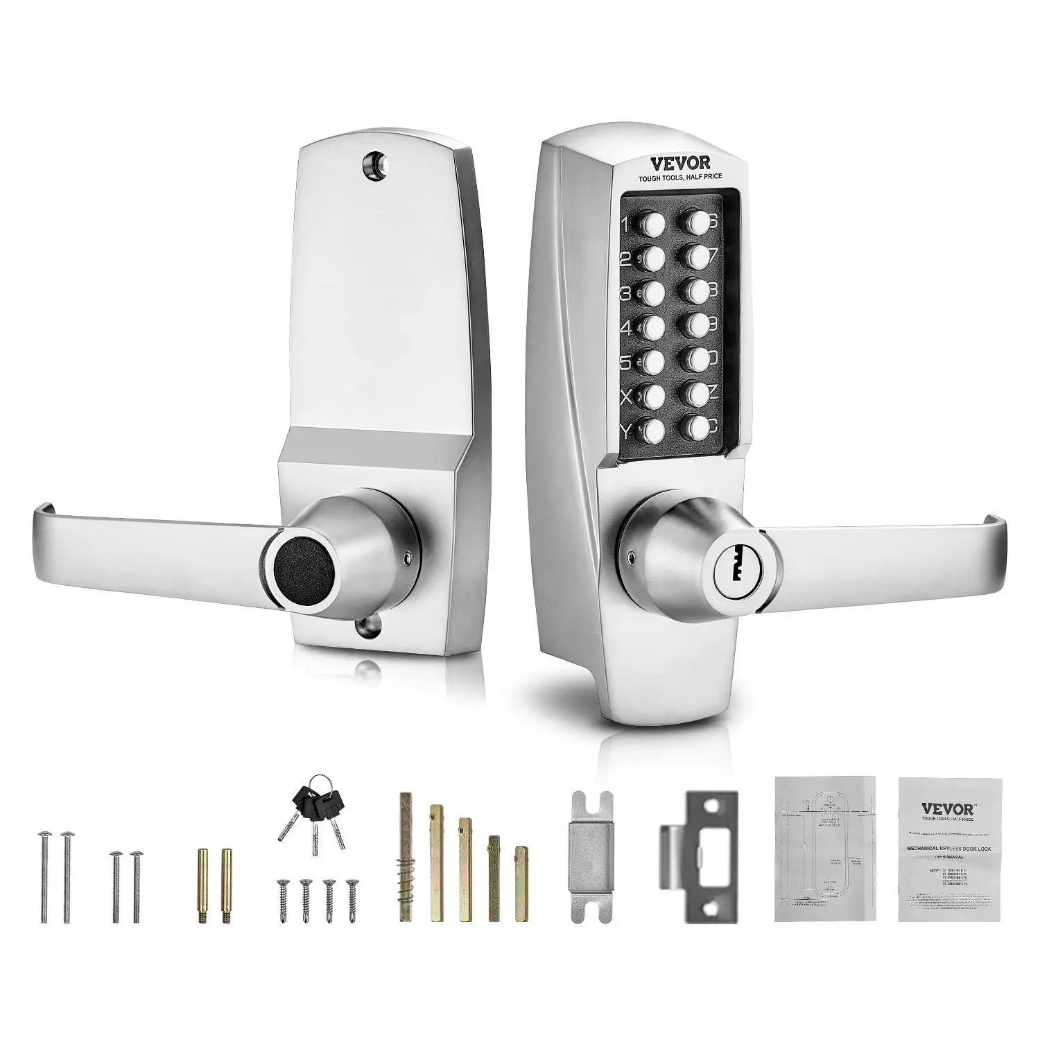 • 2nd Generation Mechanical Combination Lock: This mechanical keyless entry door lock features a fully mechanical design, making it resistant to tampering without the need for charging or batteries. With easy installation and operation, it provides high security. The second generation allows for simpler password changes, and the adjustable left/right handles provide greater flexibility