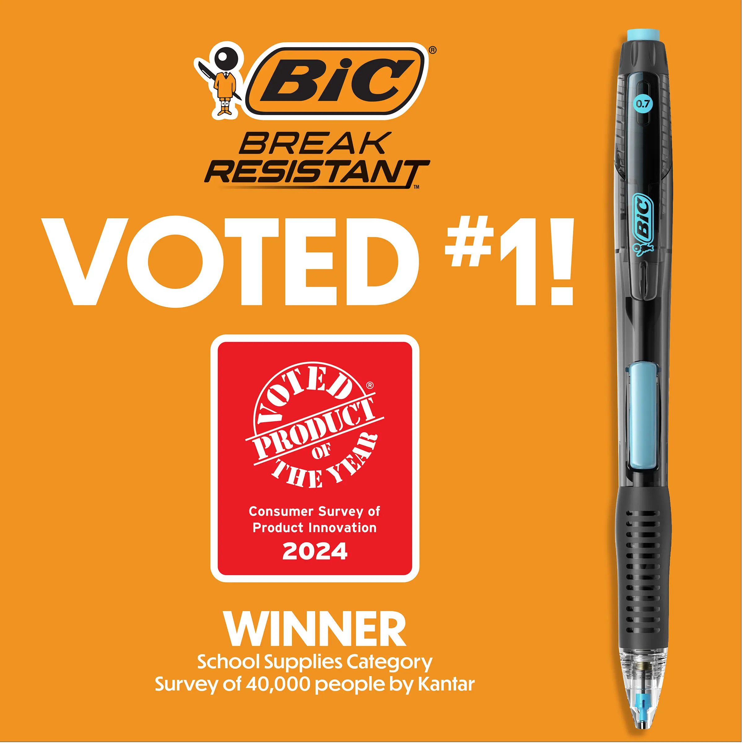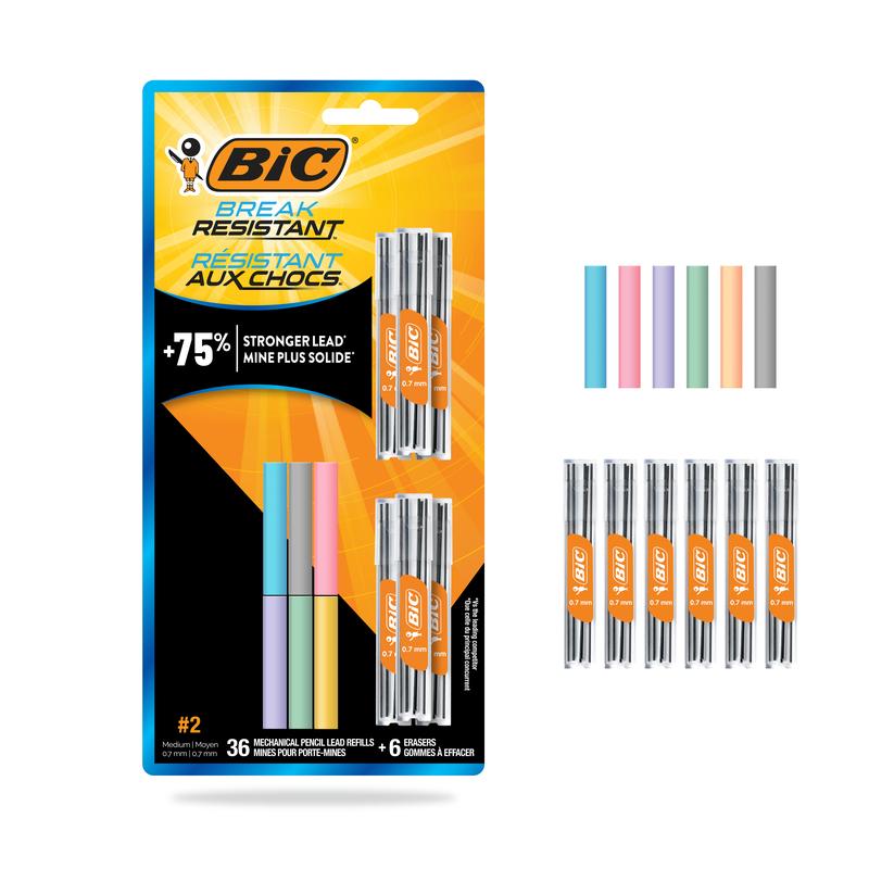 No more broken leads! Enjoy a smooth, uninterrupted writing experience with BIC Break Resistant mechanical pencil refills, thanks to the extra strong 0.7mm lead and innovative shock-absorption mechanism. 75% stronger lead* means less breakage–so you can write with less time spent clicking for more lead. Crafted with thoughtful design from top to bottom, the new BIC Break Resistant No. 2 mechanical pencil is the tool for any type of writing from jotting down a simple shopping list to composing longform letters; drafting professional documents to taking standardized tests; and everything in-between. Avoid the frustration of flimsy lead that snaps easily and requires constant replacement with the BIC Break Resistant mechanical pencil to go the distance and last as long your inspiration. *vs leading competitor