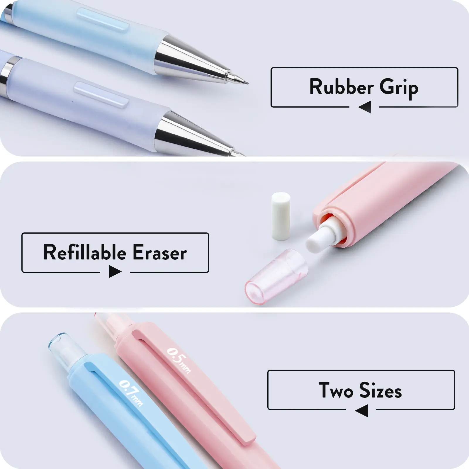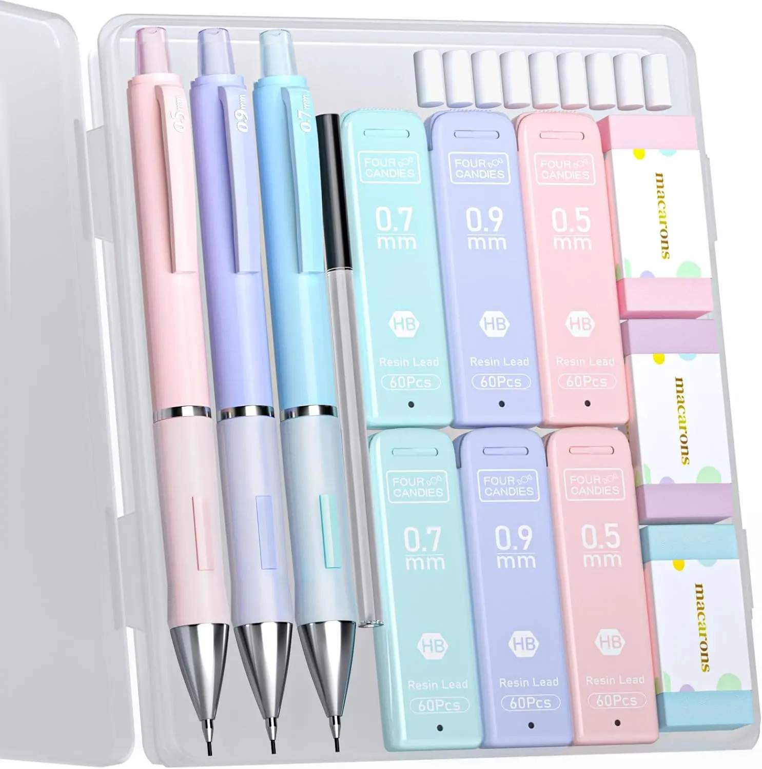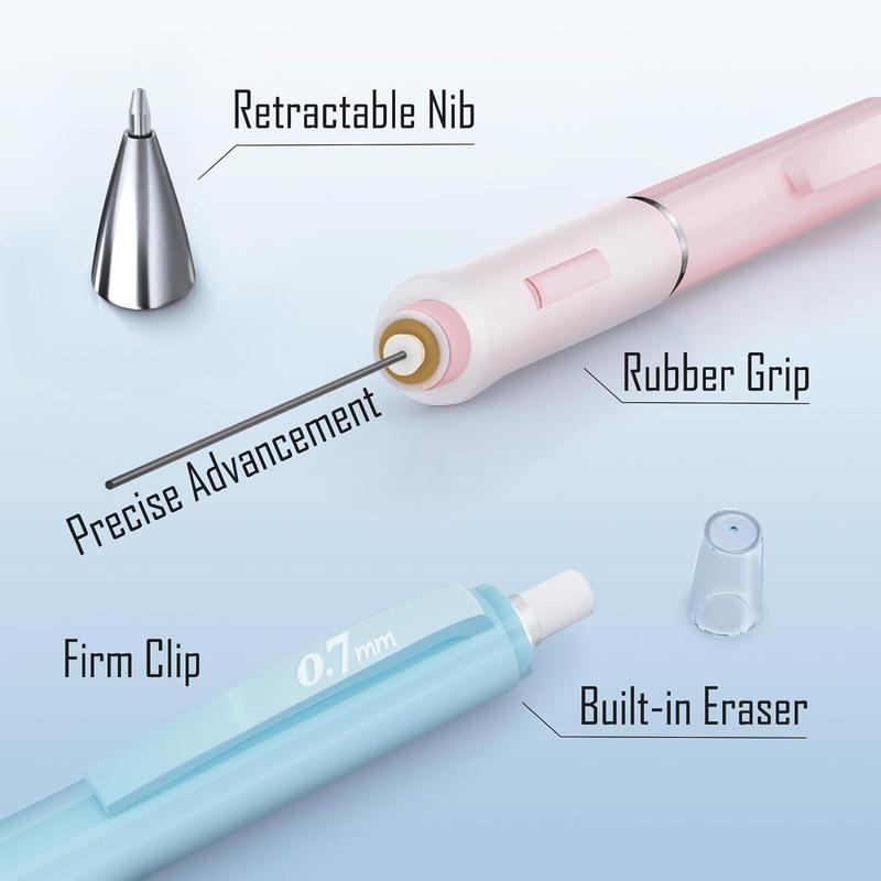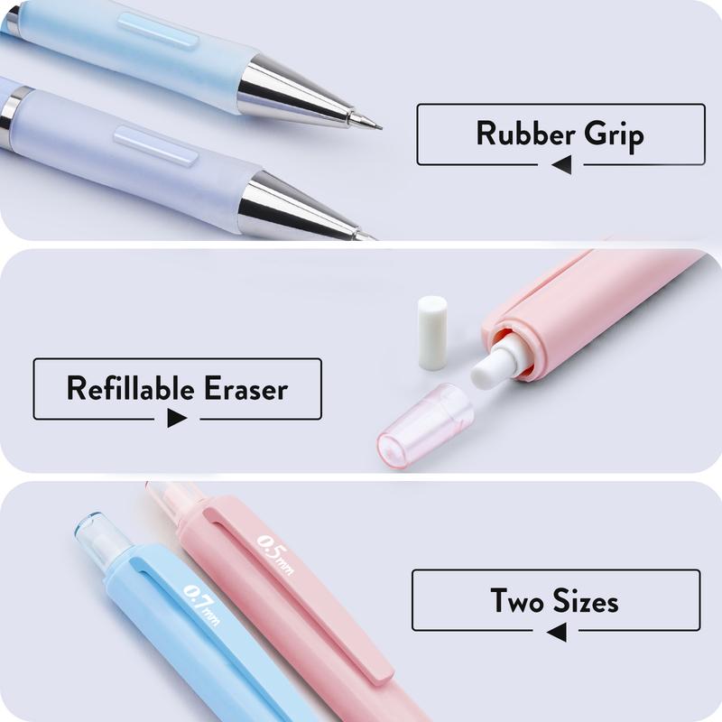 ·📏 Contains 3 pastel mechanical pencils (0.5mm, 0.7mm, 0.9mm).