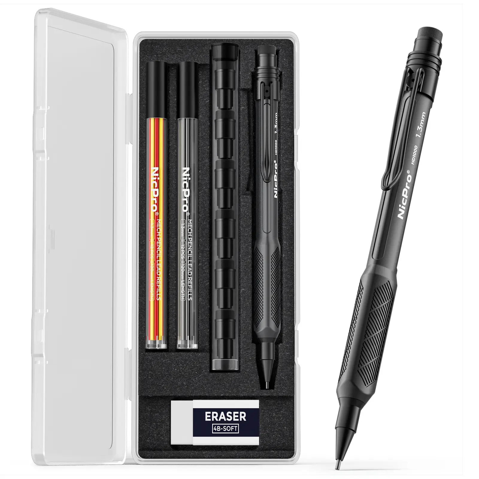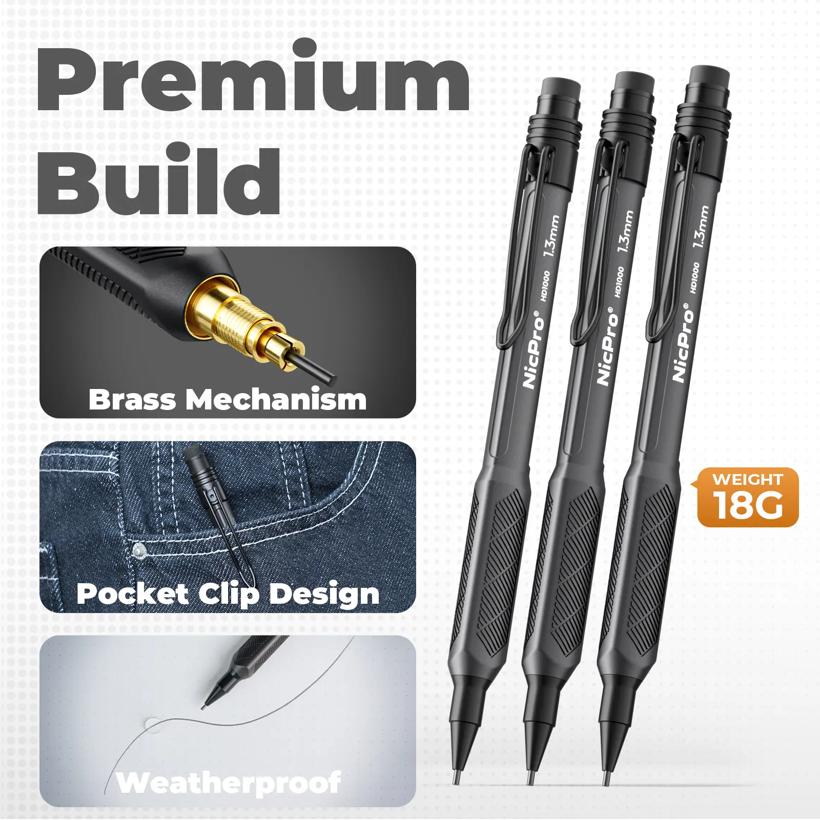 Summary:The Nicpro 3 Pack 1.3 mm Mechanical Pencil Set is a versatile and durable tool for various tasks, including technical drawing, daily writing, and construction marking. It features all-weather capabilities, thicker lead, ergonomic design, and waterproof markings, making it ideal for extreme weather conditions and wet environments.
