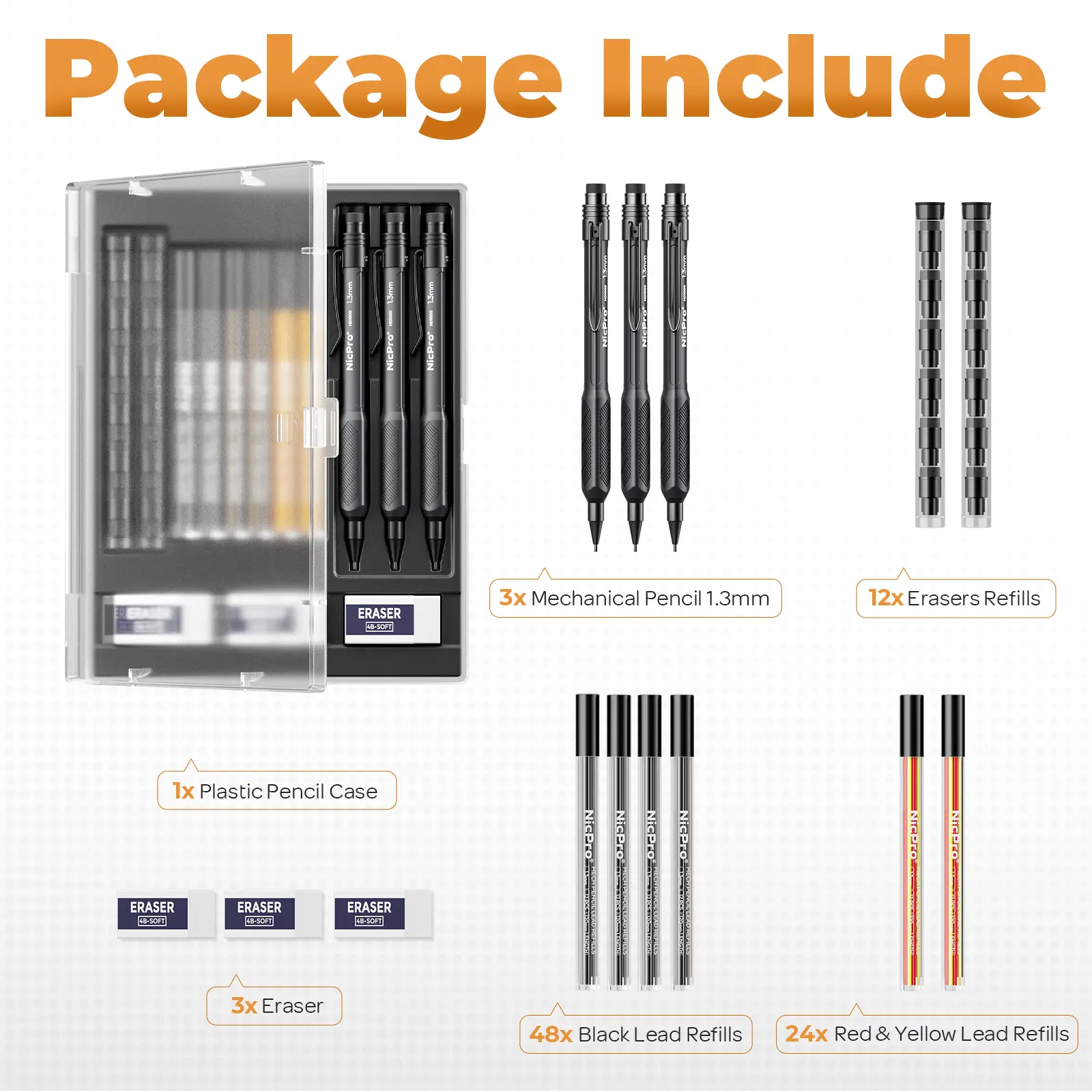 ·Pencils: 3 pack 1.3mm mechanical pencils