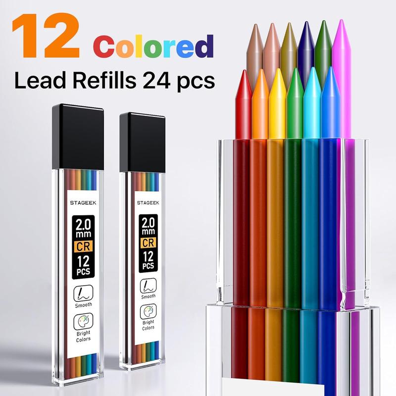 ·【384PCS Lead Refills】 Comes with 3 tubes of 0.5mm refill(36pcs/tube), 3tubes of 0.7mm(36pcs/tube), 3 tubes of 0.9mm(24pcs/tube); 9 tubes of 2.0mm graphite leads(8pcs/tube), 2 tubes of colored leads(12pcs/tube). Perfect for sketching in different shades