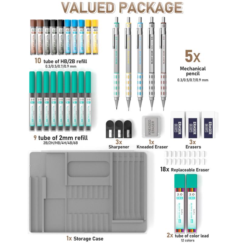 It was pretty cheap for the variety of pencils and comes with tons of lead it’s good for a lot of stuff especially the 2.0 pencil it’s pretty thick and it doesn’t really break so it could be good for engineering give it to you dad to greatly measure things or drawing.