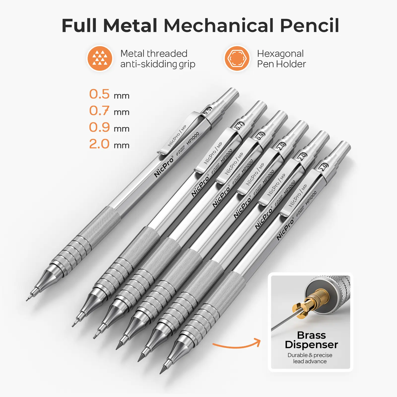 ·30 Pencils: Set includes 30 silver metal mechanical pencils.