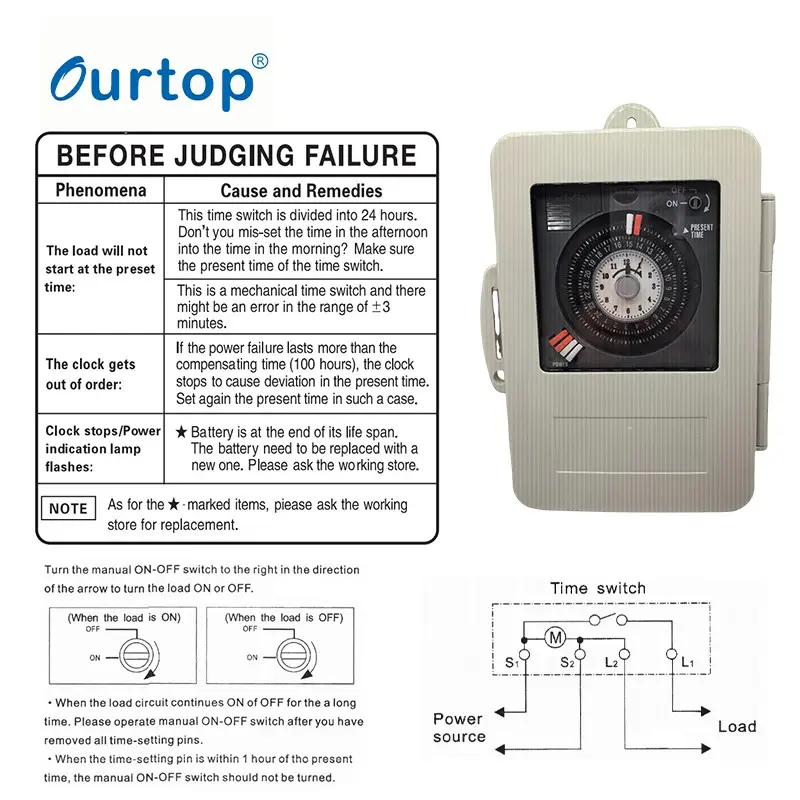 Factory Selling Mechanical Ourtop SUL181h 3 Modules DIN-rail Timer Analogue Time Switches with Battery