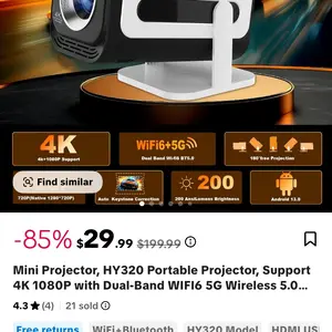 Great projector for the price! Clear picture, easy setup, and fast WiFi connection. The auto-keystone works well and the brightness is solid for movies or gaming. Lightweight, smooth Android system, and overall a great value. Really impressed with this purchase