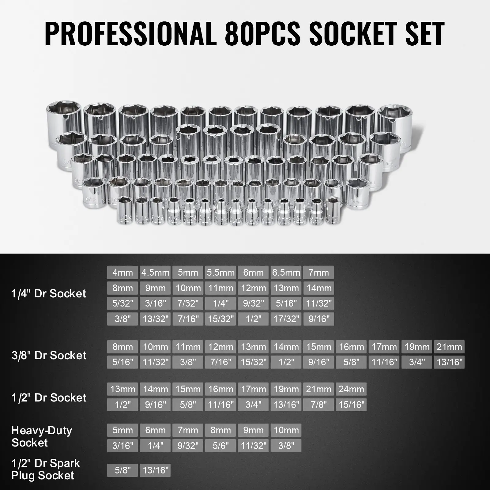 ·Ultimate Compatibility: This 207-piece mechanics tool set includes SAE and metric sizes of 1/2", 3/8", and 1/4" drive sockets, ratchet handles, hex wrenches, extension bars, bits, screwdrivers and pliers, making it perfect for handling complex repair jobs.