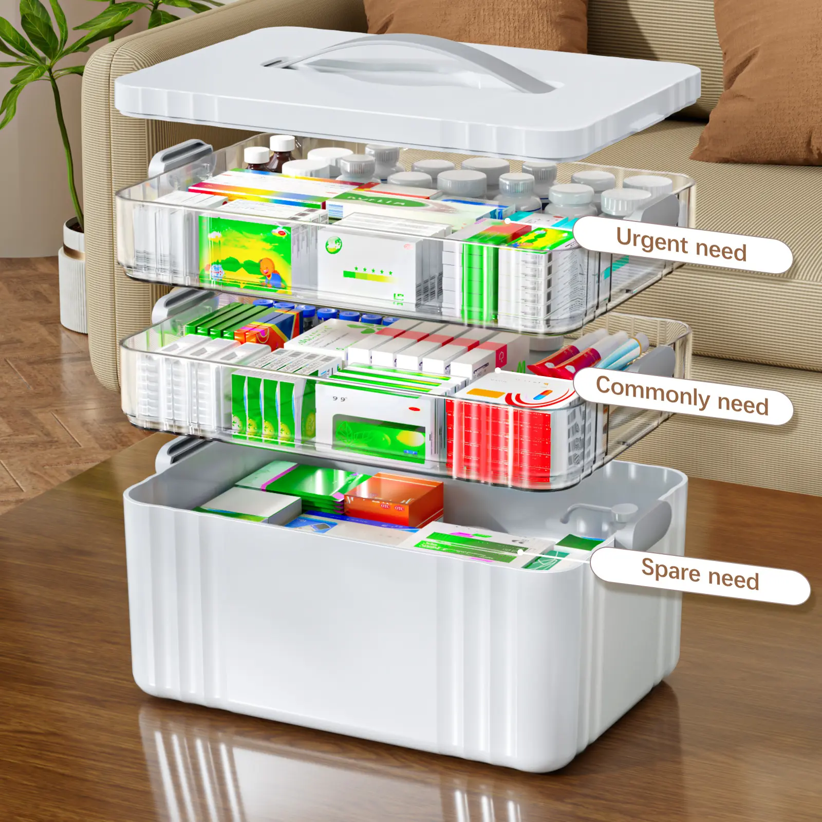 This organizer box is ideal for home first aid kits. It offers a convenient way to store and organize medications. The lockable design and carry handle make it practical for everyday use. Keep your medications organized and easily accessible. 📚