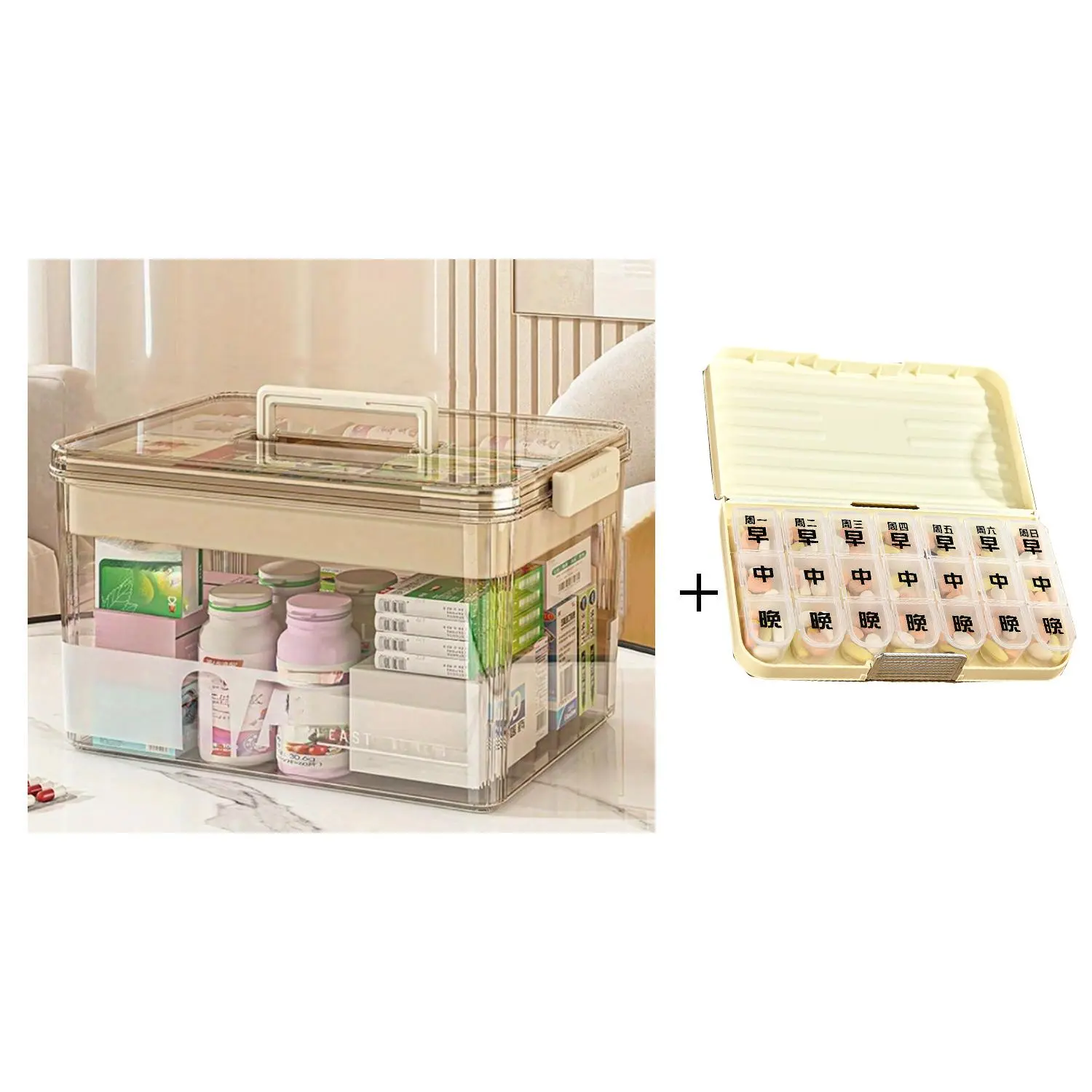 Beige Box*1 Count, Medicine Storage Box