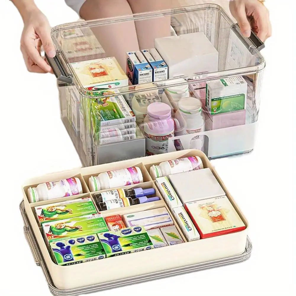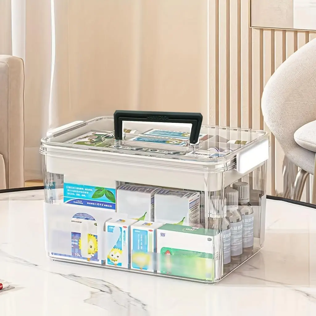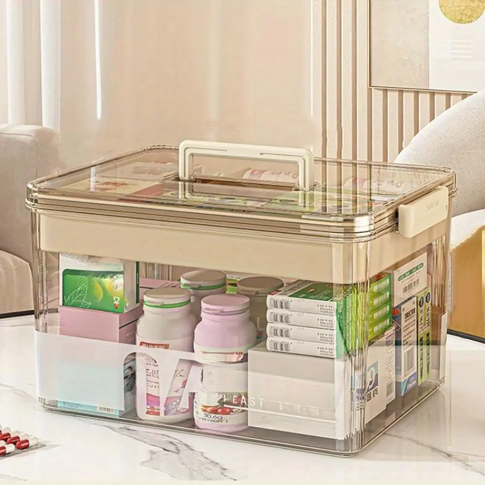 Clear Medicine Storage Box with Handle, 1 Count/2 Counts Large Capacity Plastic Pills Box, Household Portable Sundries Organizing Storage Box, Home Organizer, Durable Plastic Organizers #GLOBAL PICKS