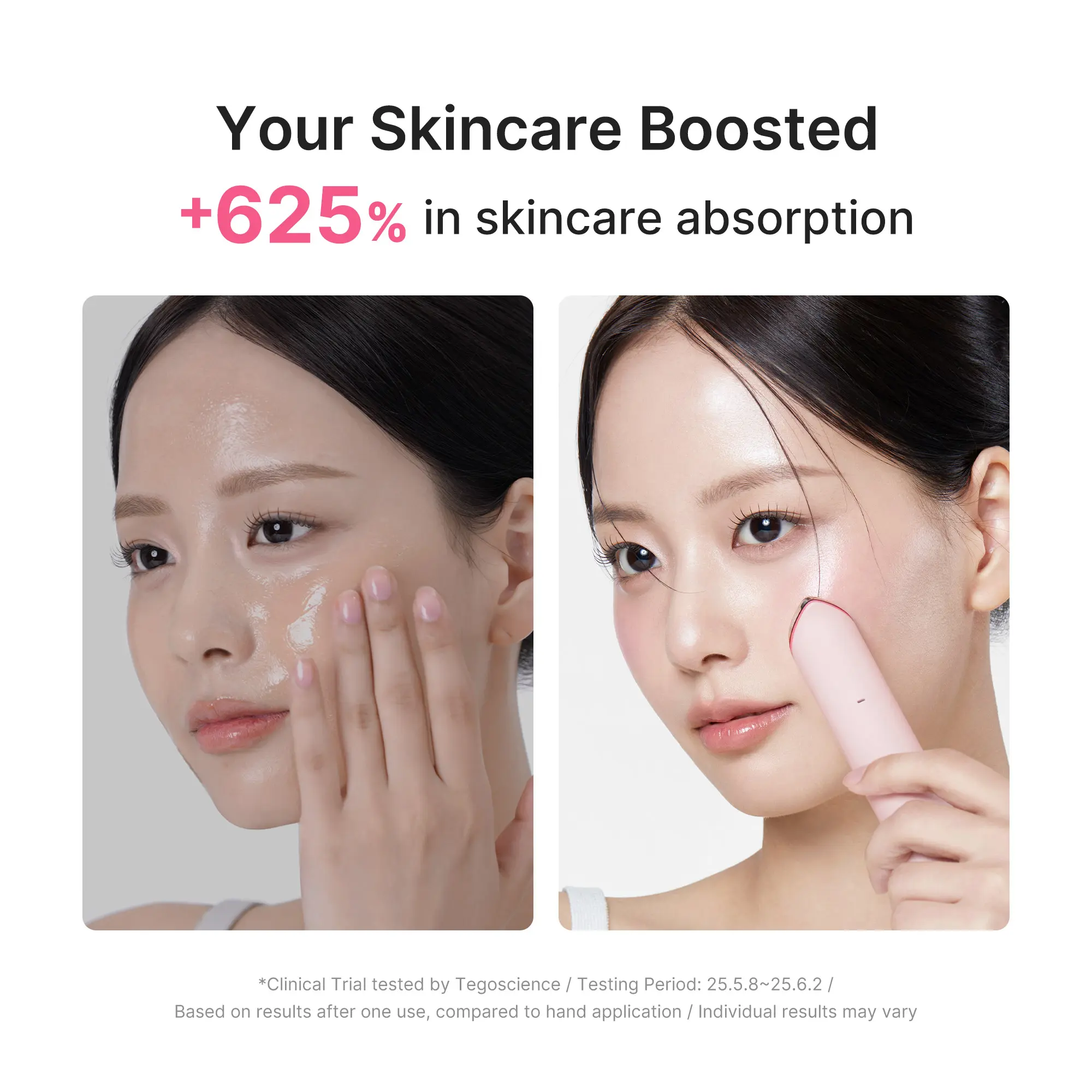 Use medicube Mini Booster Pro Plus to enhance the skincare absorption by 625%* compared to just using your hands