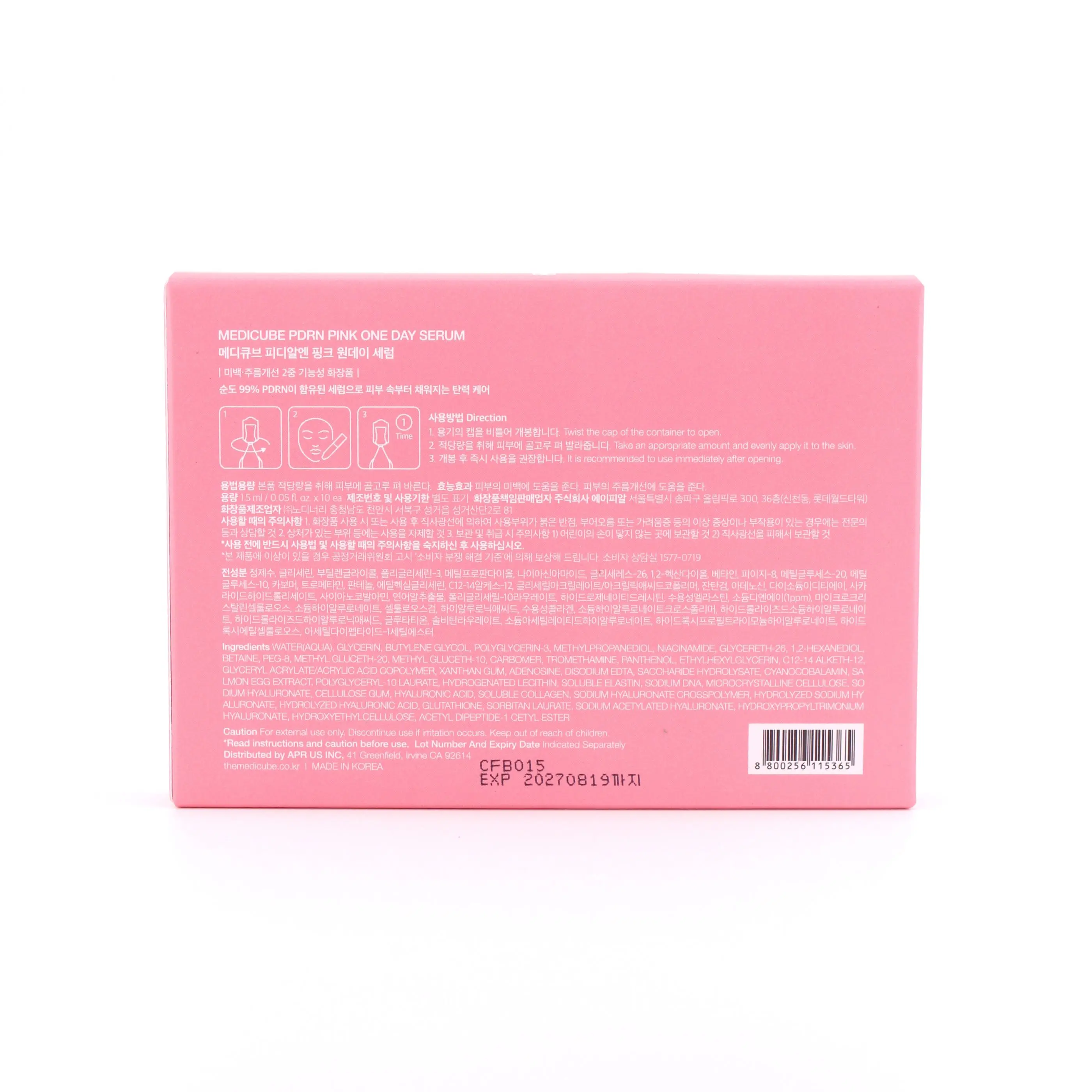 Experience youthful and revitalized skin with Medicube - PDRN Pink One Day Serum. This powerful serum, infused with Polydeoxyribonucleotide (PDRN), promotes skin regeneration and hydration, making it the perfect addition to your daily skincare routine. Each box contains 10 individual 1.5ml vials, ensuring freshness and potency with every application.