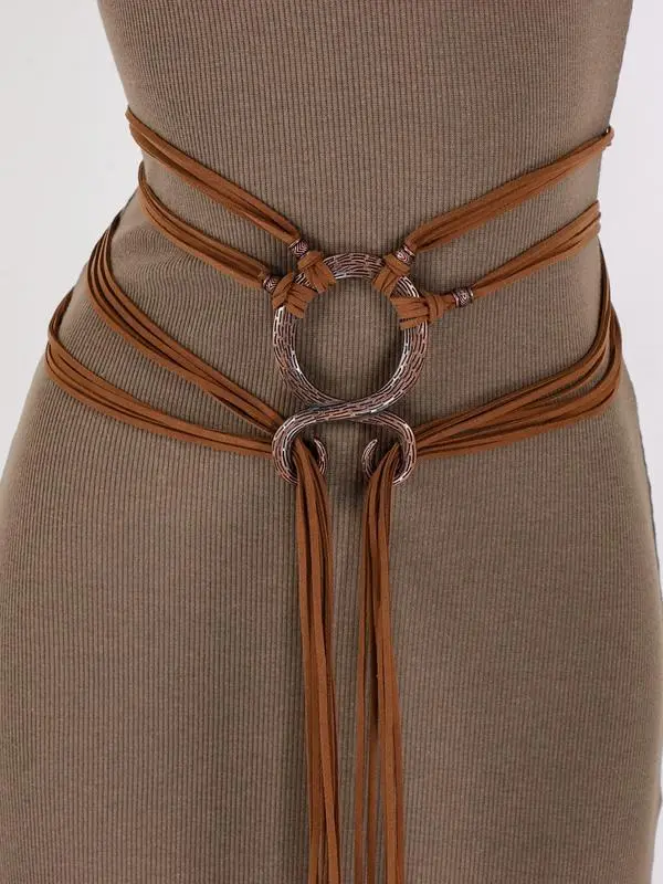 • Adjustable: One size fits most and Self-tie. Total length of belt: 154-160cm/60.6-63.0inch. Strips held by a Viking Troll Cross O-ring at the center, the norse witch belt can be wrapped in various styles to suit different outfits and body types.