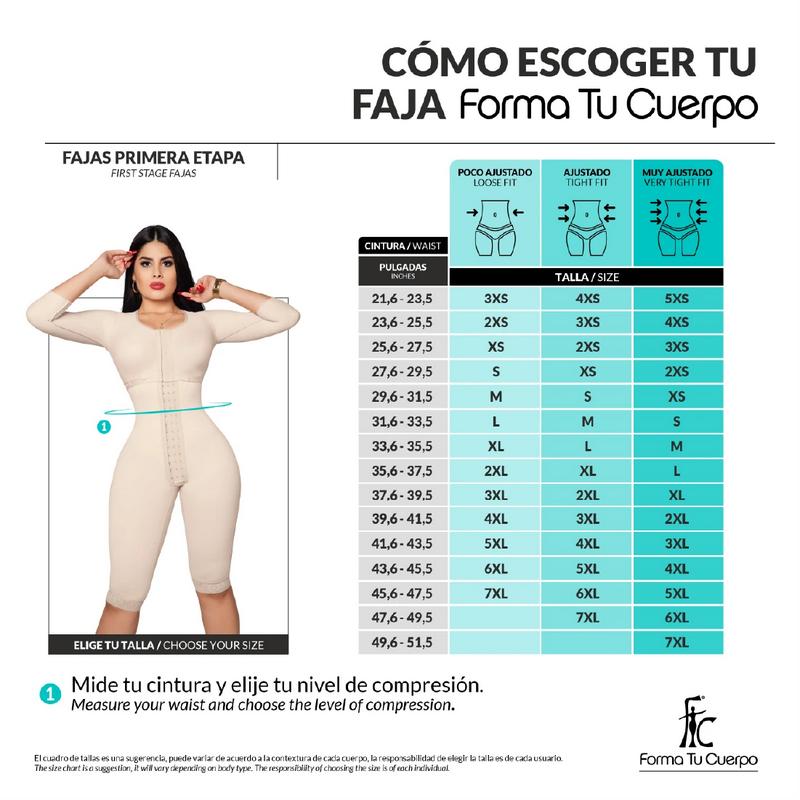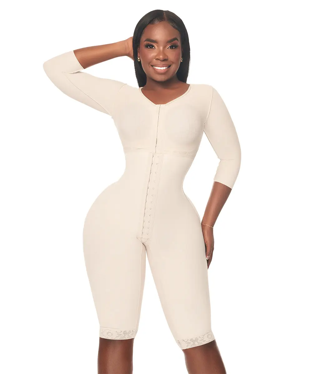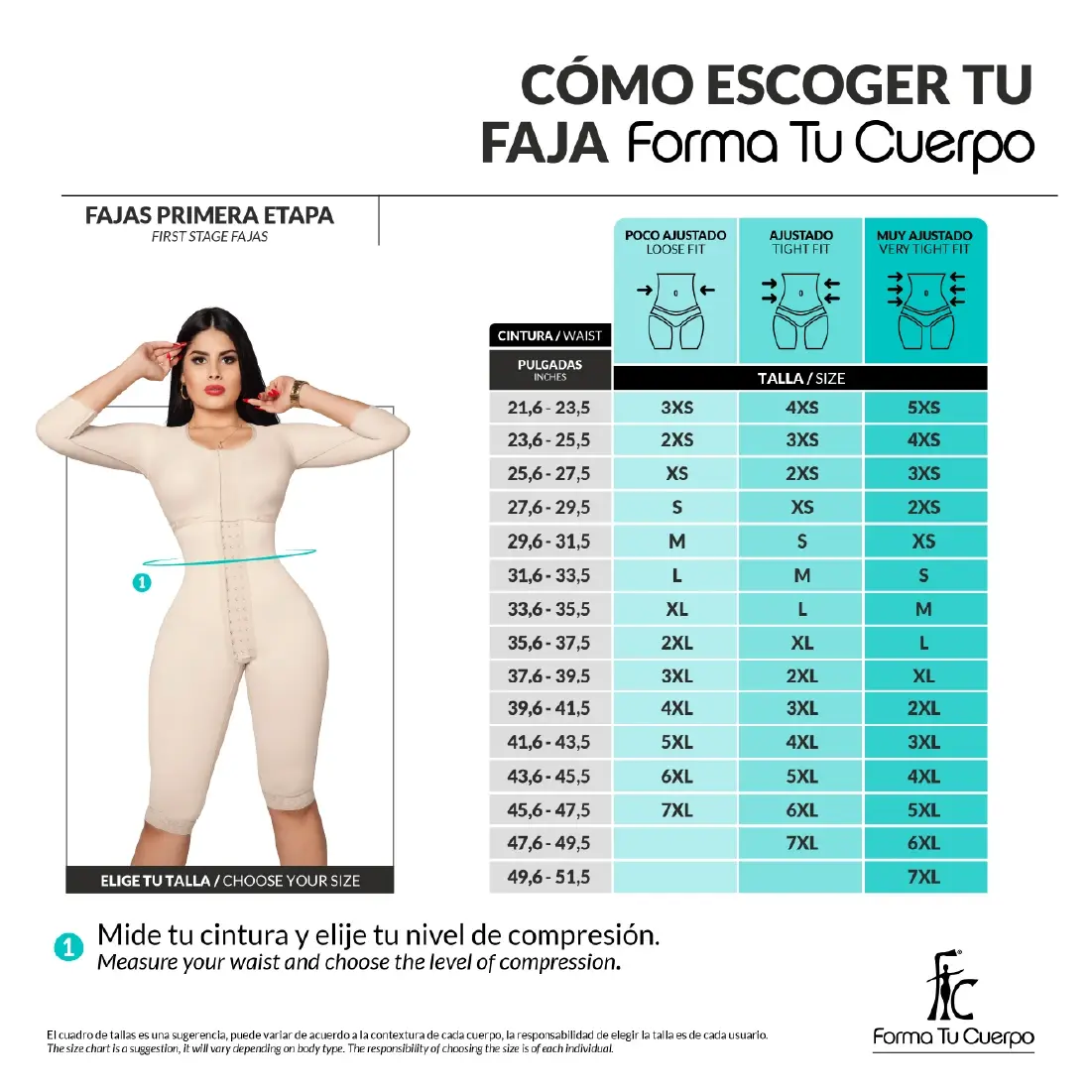 Post-Ope Shapewear (REF. C-018) with medium compression up to the knee and central hooks. Ideal for surgery in bust, abdomen, glutes, or arms. Ergonomic design and professional endorsement recommend this garment for recovery. It supports your figure and enhances well-being with medium compression.