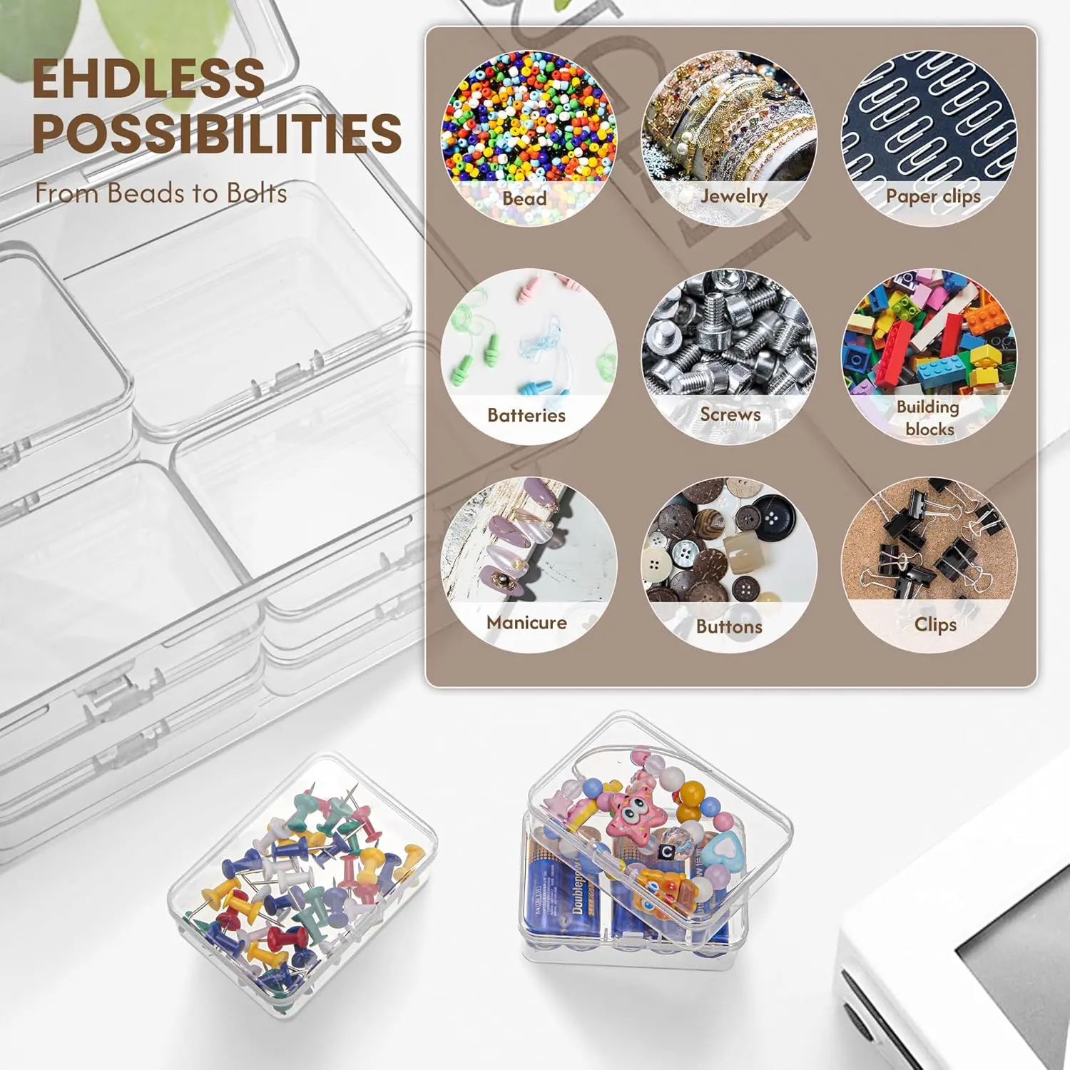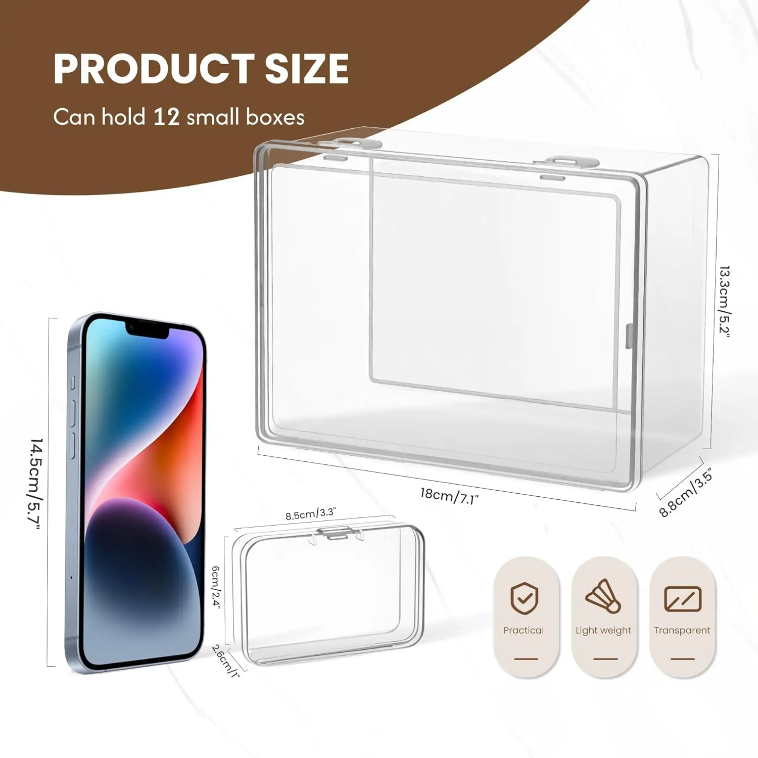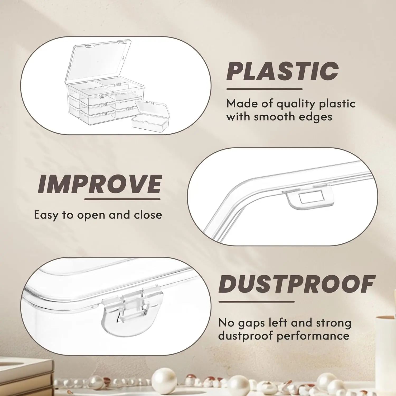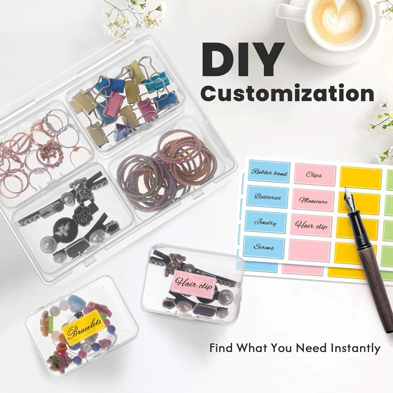 Medium Plastic Organizer Boxes, 12 Clear Containers with Hinged Lids, for Beads, Jewelry, Crafts, Electronics, Hardware, School Supplies (32 Labels)