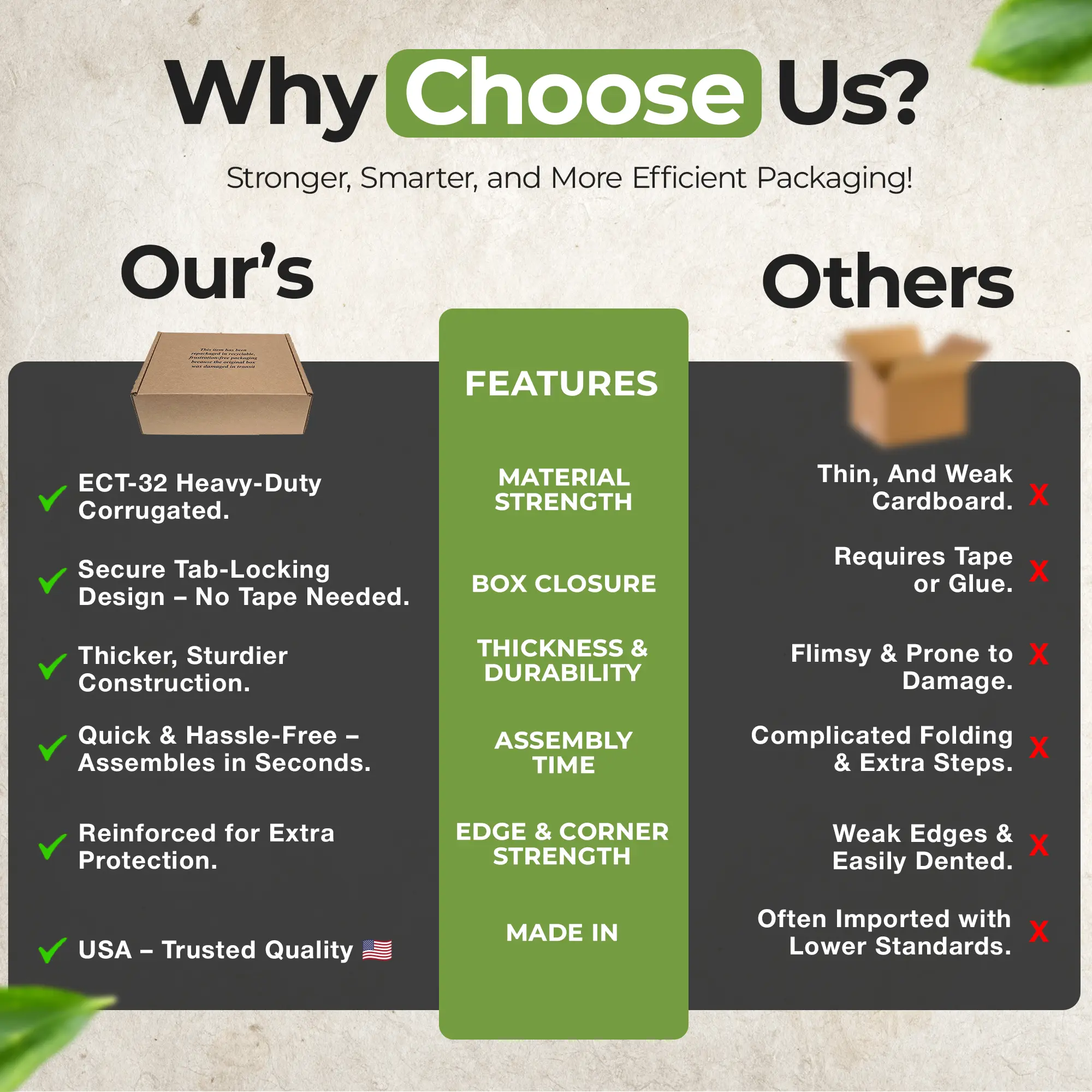 These boxes are self locking and have the repackaging verbiage printed on them! The boxes are thicker, stronger, sturdier, bigger and easier to put together than a lot of other options on the market for shoes or any other items you would want to sell and/or ship in. If you are shipping shoes into amazon, direct to customers or other online selling marketplaces, you don't have to spend time putting a rubberband around the box or worrying about them opening and your items falling out! The message on the outside reads, "This item has been repackaged in recyclable, frustration-free packaging because the original box was damaged in transit"