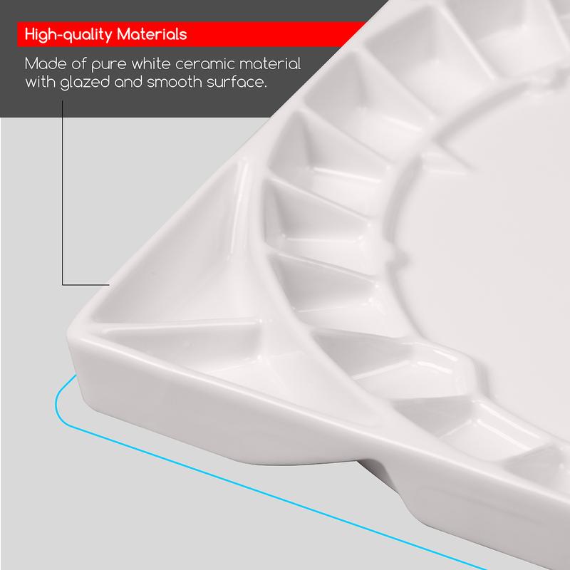·PREMIUM LARGE STUDIO CERAMIC PAINT PALETTE - Made of premium white Eco-friendly ceramic material, The ceramic watercolor palette is durable with a nice solid weight, and will not slide around while painting. Size 12-3/5"x 12-3/5", enough room for mixing