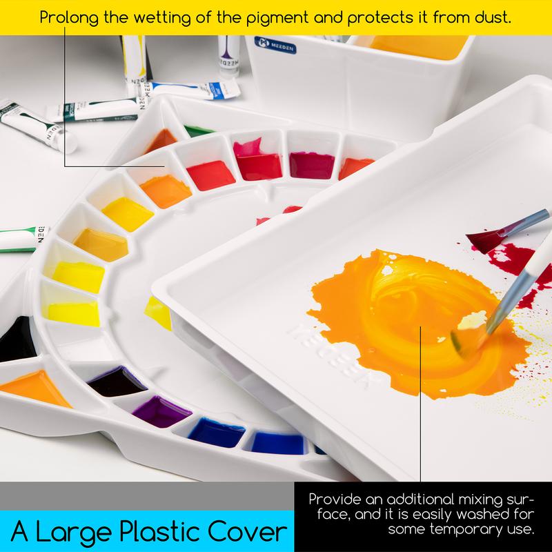 ·WORLD-CLASS CLEVERLY DESIGN - 32 deep wells and a very large central mixing area, the painting palette helps in choosing complementary colors across the color wheel super easily, and the large central mixing area makes your mixing more freely. Colors will come alive on it