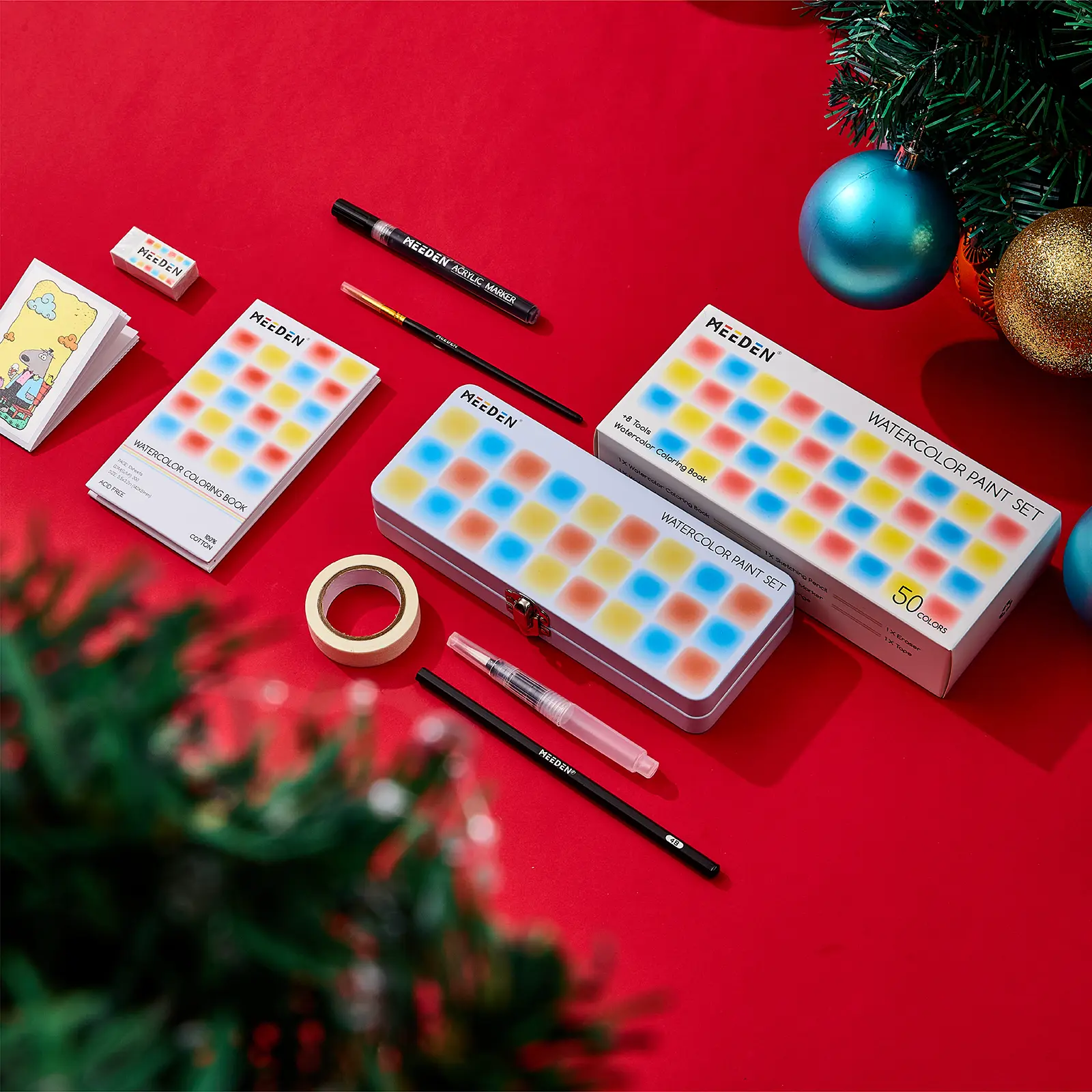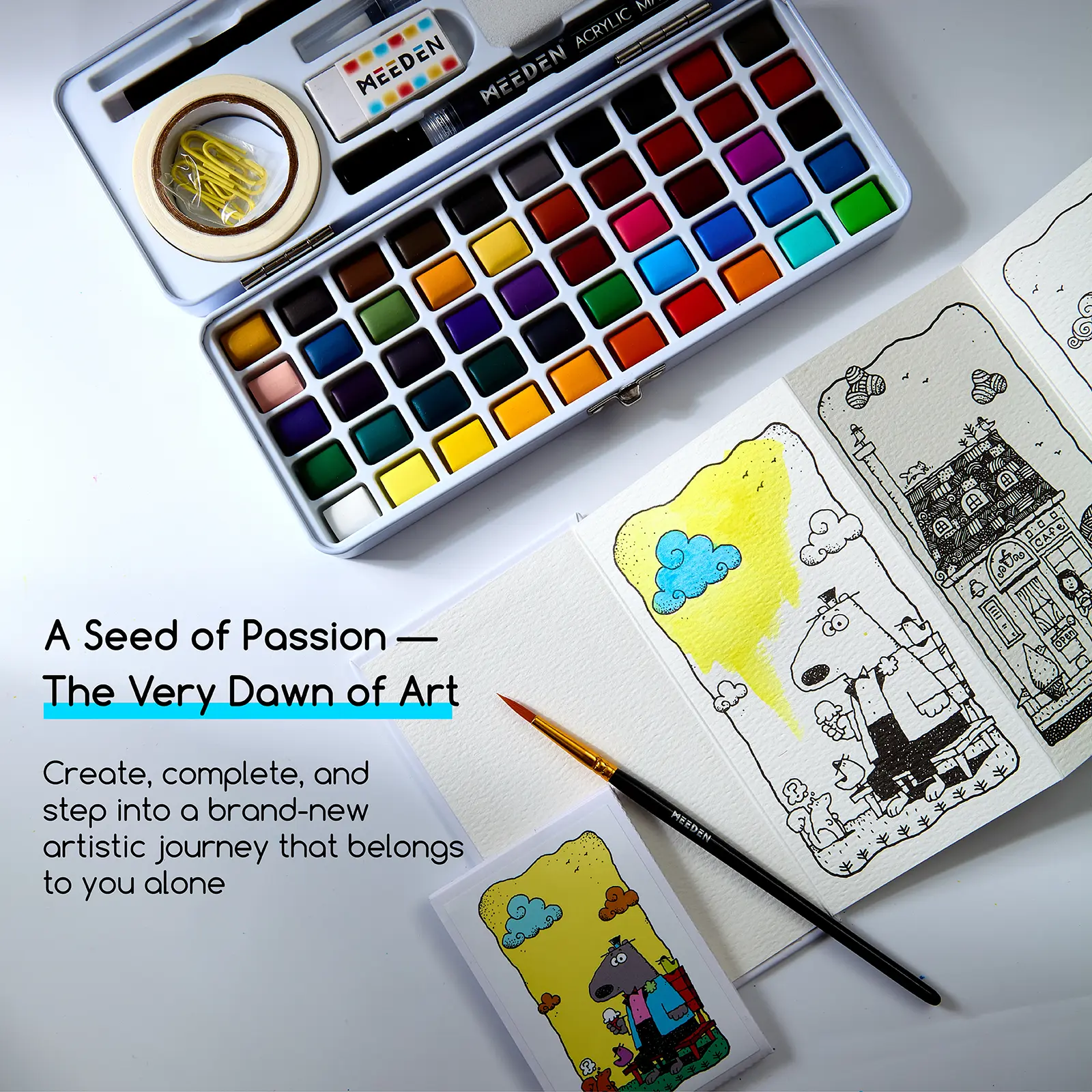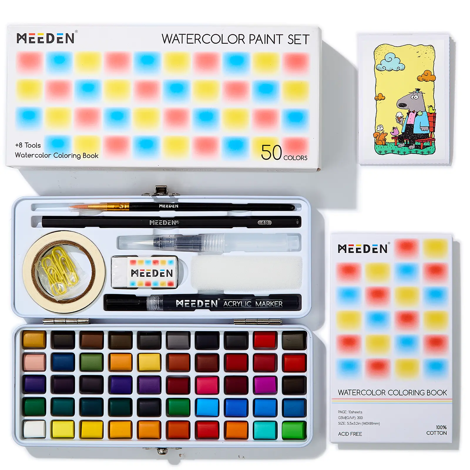 All-in-One Palette, Pocket-Sized Creativity: MEEDEN 50-color watercolor palette packs a full studio’s worth of tools into a sleek, portable tin—no bulk, just pure convenience. Perfect for throwing in a pocket or bag, it includes everything needed for spontaneous drawing: 50 vibrant hues, a 4B pencil, water brush, eraser, stencil sheet, washi tape, and 10 watercolor paper sheets. Whether sketching on-the-go or organizing supplies, this compact tin keeps your art kit tidy and ready for action.