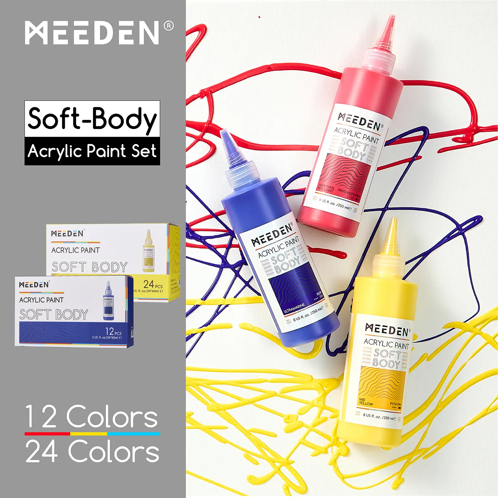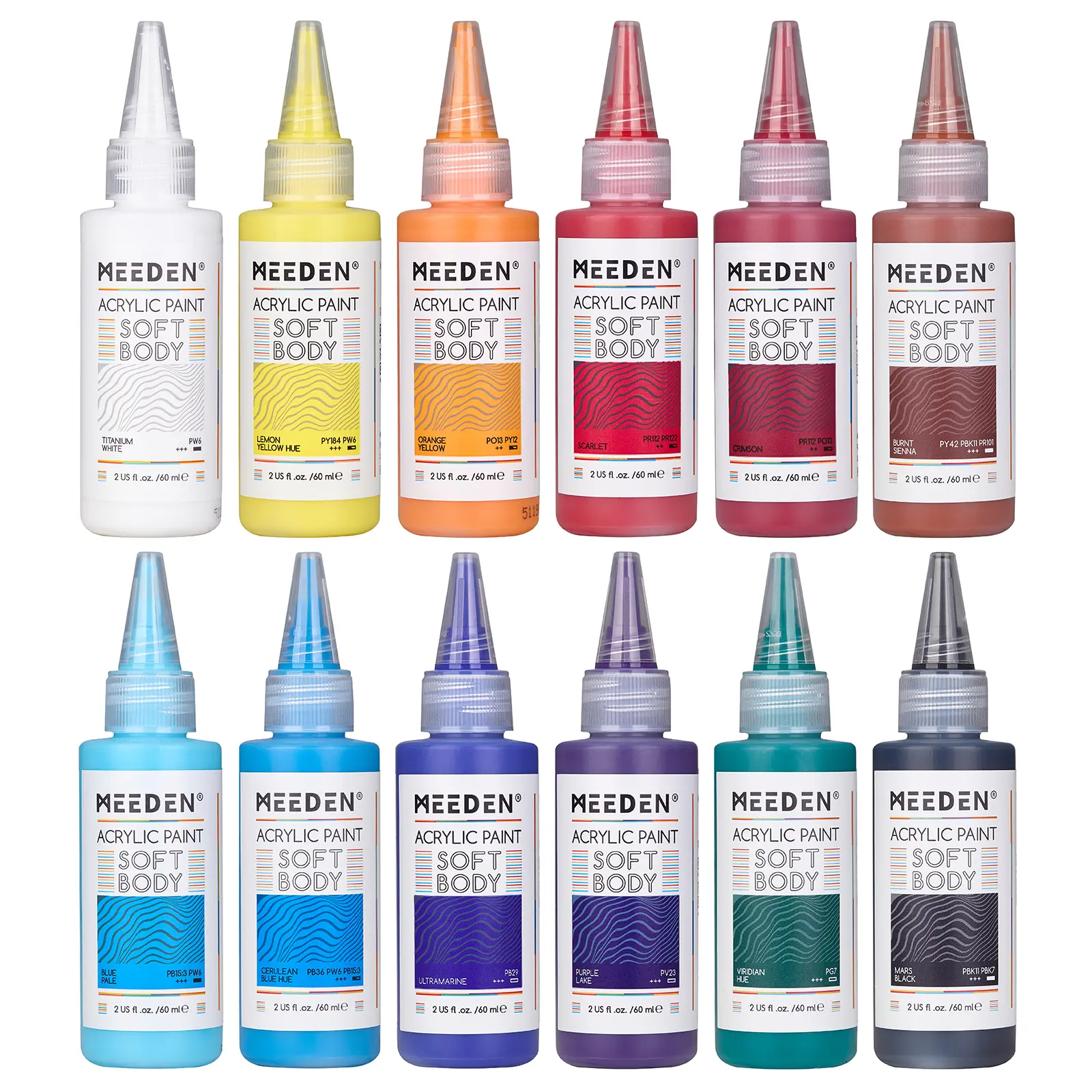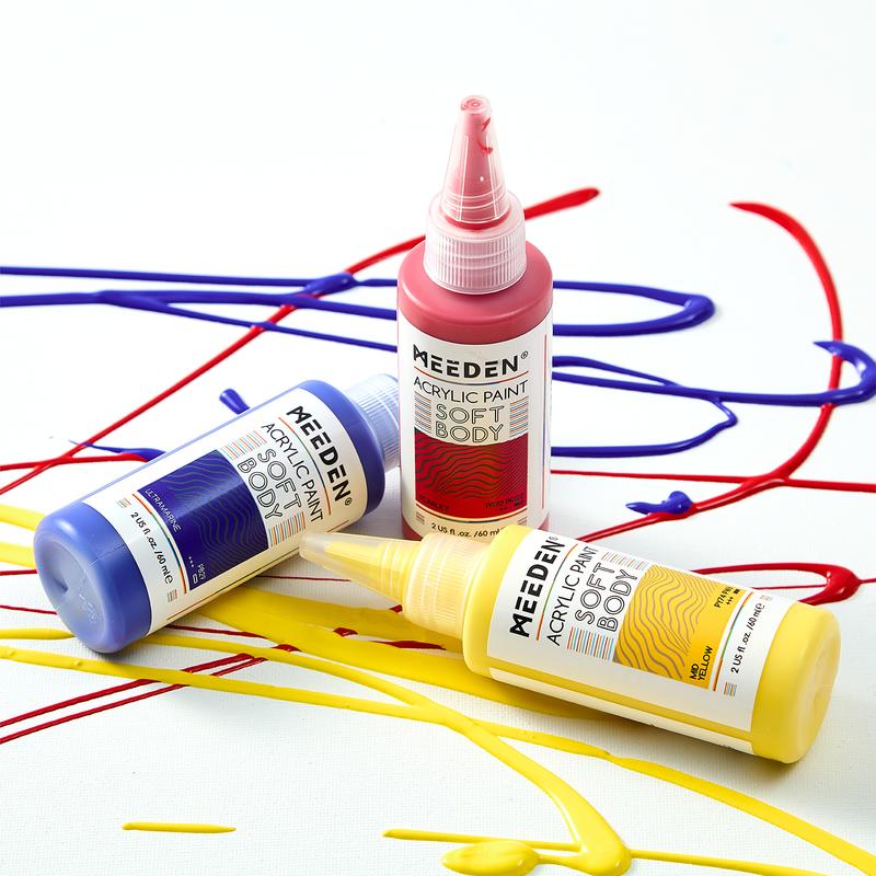 ·Easy to Use, Ready to Paint: MEEDEN Soft Body Acrylics are formulated with a smooth, honey-like consistency that makes them easy to squeeze and control. You can start painting right out of the 2oz Fluid Paint Tube without needing to mix or dilute. MEEDEN Soft Body pigment mixes easily without water and has a better and faster mixing effect than others. And the ergonomic bottle design is easy to squeeze and does not cause waste.
