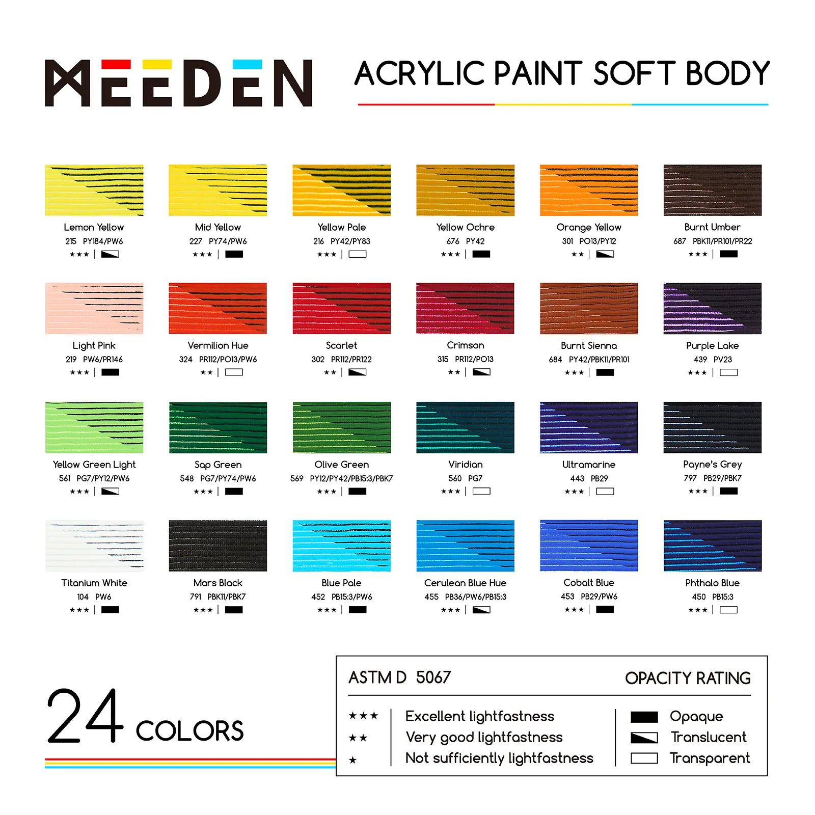 ·High Cost-Effectiveness: MEEDEN 24 color Soft Body Acrylic Set is designed to deliver outstanding value for both beginners and seasoned artists. Each bottle of acrylic paint is 60ml/2oz and comes in a variety of colours, including white, black, yellow, red, blues, green, orange and purple. Whether you're just starting your artistic journey or looking for a cost-effective practice set, this collection is your ideal choice.