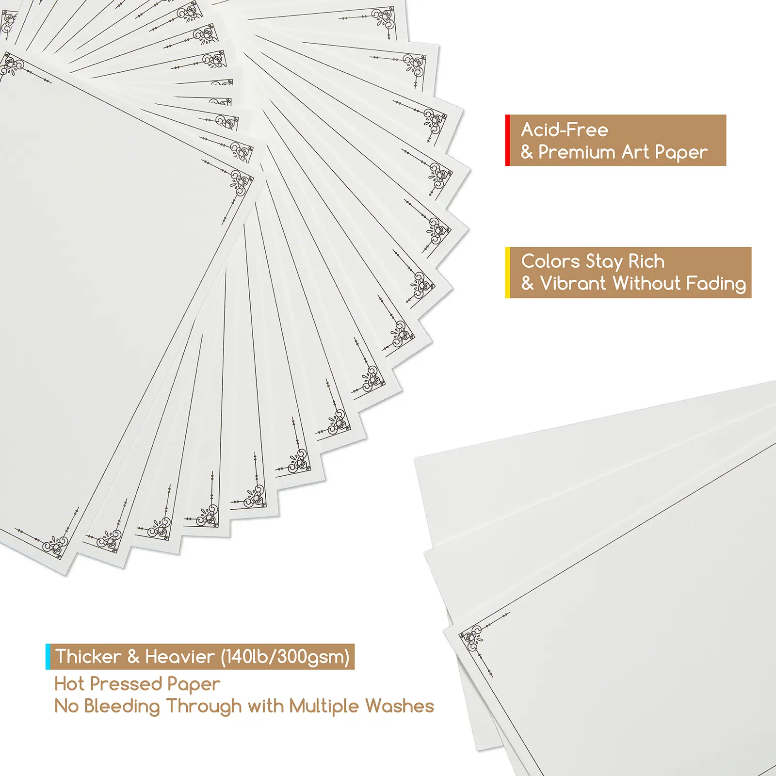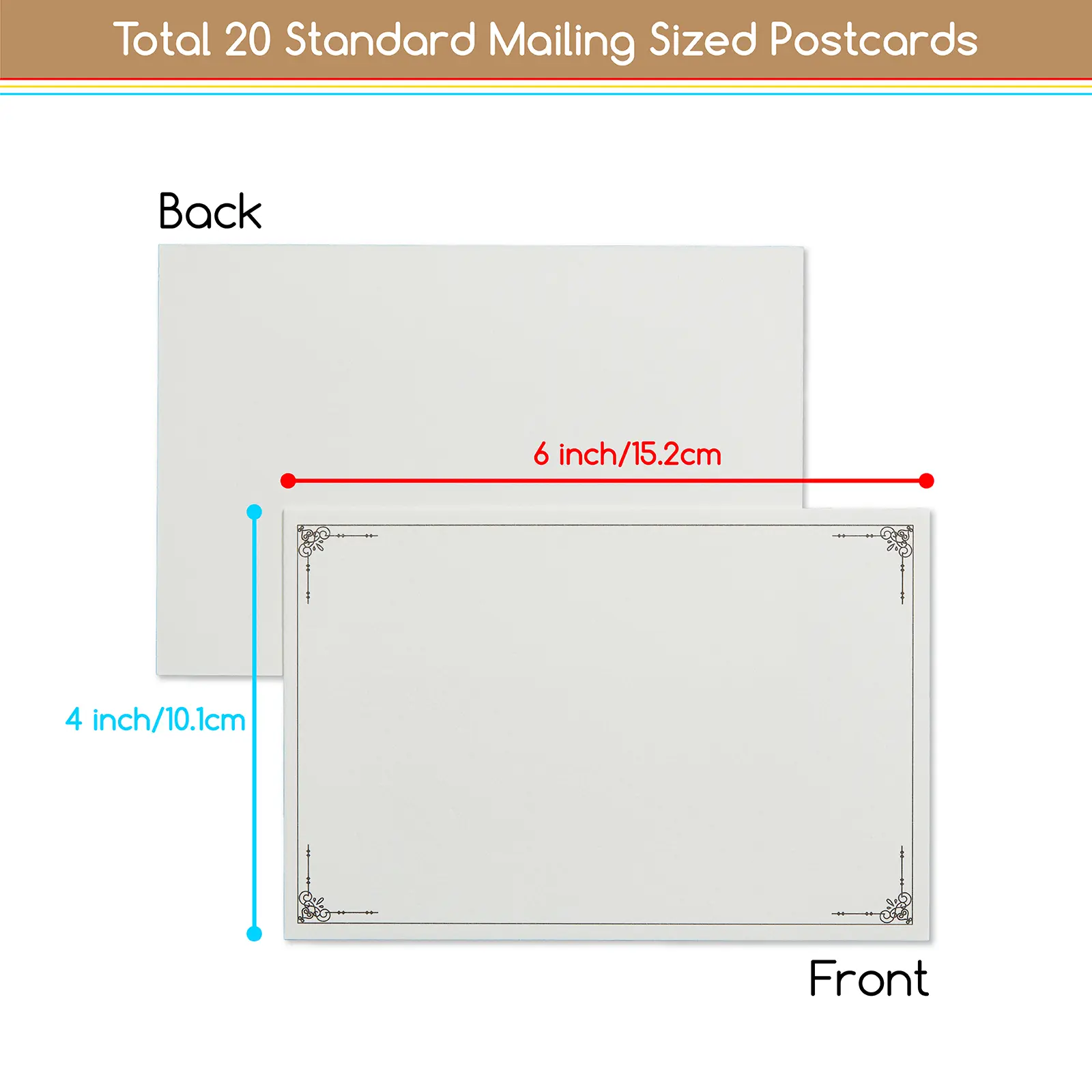 ·Customizable Blank Note Cards: Each postcard features a blank front side for your artwork, while the reverse is border pattern for decorating. The ample space on both sides allows artists and hobbyists alike to design unique, personalized postcards that truly stand out.