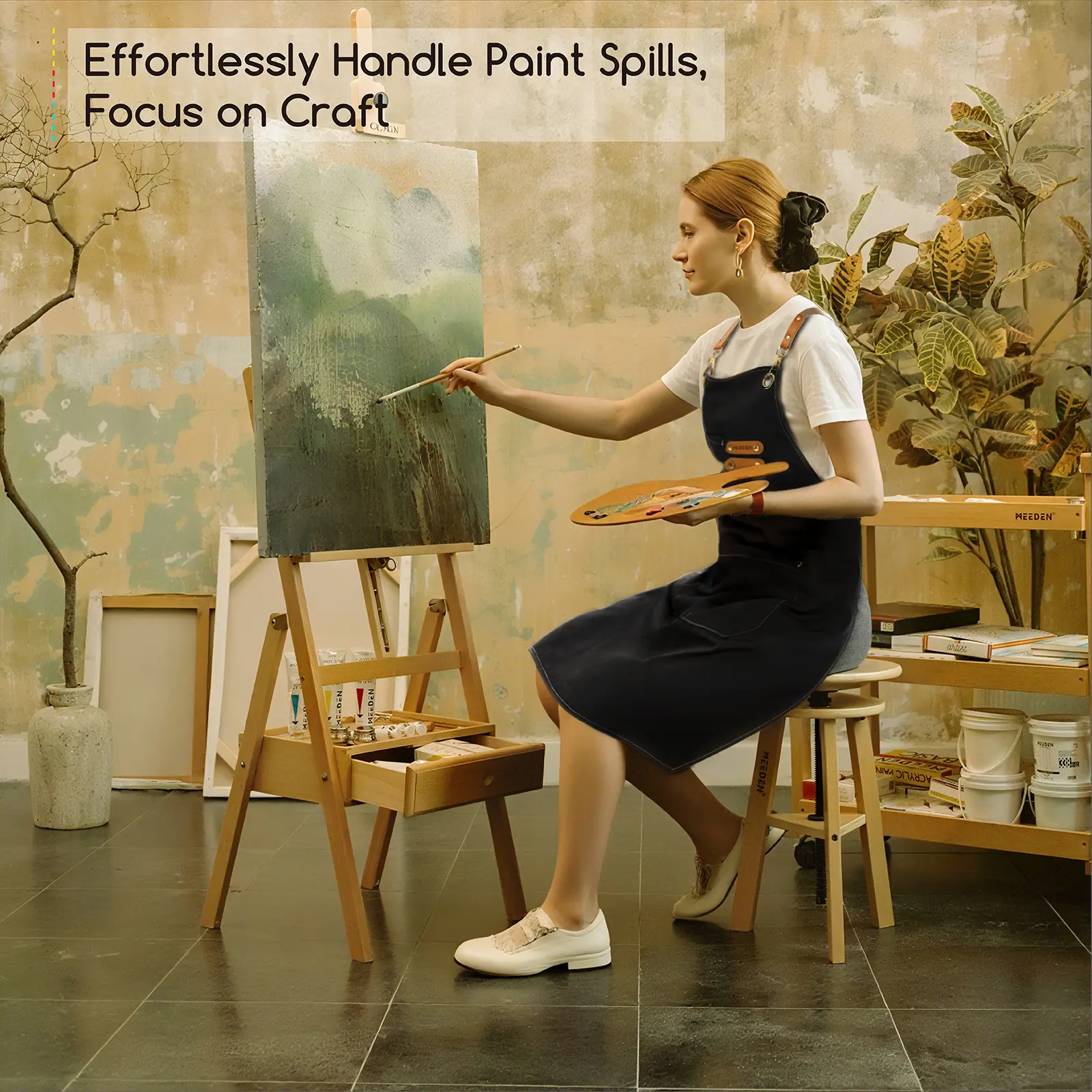 ·Waterproof Art Apron: MEEDEN paintng aprons use advanced waterproof and stain-resistant technology to ensure impermeability and effectively protect clothing from paint, pigments, stains, and other splashes. Designed specifically for artists and painting lovers, even if paint splashes on the apron, simply wipe it clean