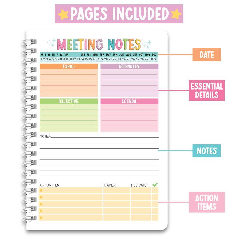 Bring clarity to every meeting with this work to-do list notebook. It's an organized notebook, notetaking notebook, corporate work planner, task list notebook, manager planner, project organizer, daily notes notebook, work agenda, work notes organizer, and more.