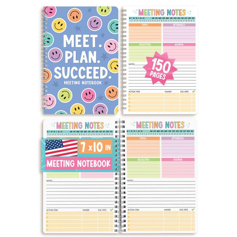This meeting notebook is designed in the USA. It provides ample space to track topics, set objectives, outline agendas, and record decisions. Keep meetings clear, productive, and easy to follow up.
