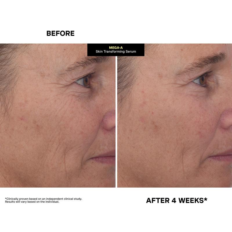 More powerful than Retinol and gentle enough for daily use? No, you’re not hallucinating. Our MEGA-A Skin Transforming Serum is powered by clinical-grade Retinal, proven to be 11x more effective than Retinol. But just wait – it gets better… Actives like Retinol often cause dryness and irritation. This powerhouse serum blends skin-enhancing Retinal with Hyaluronic Acid + Squalane to increase hydration and elasticity while smoothing the look of fine or deep lines. Perfect for all skin types (even sensitive girlies) whether you’re experienced with retinoids or just getting started.