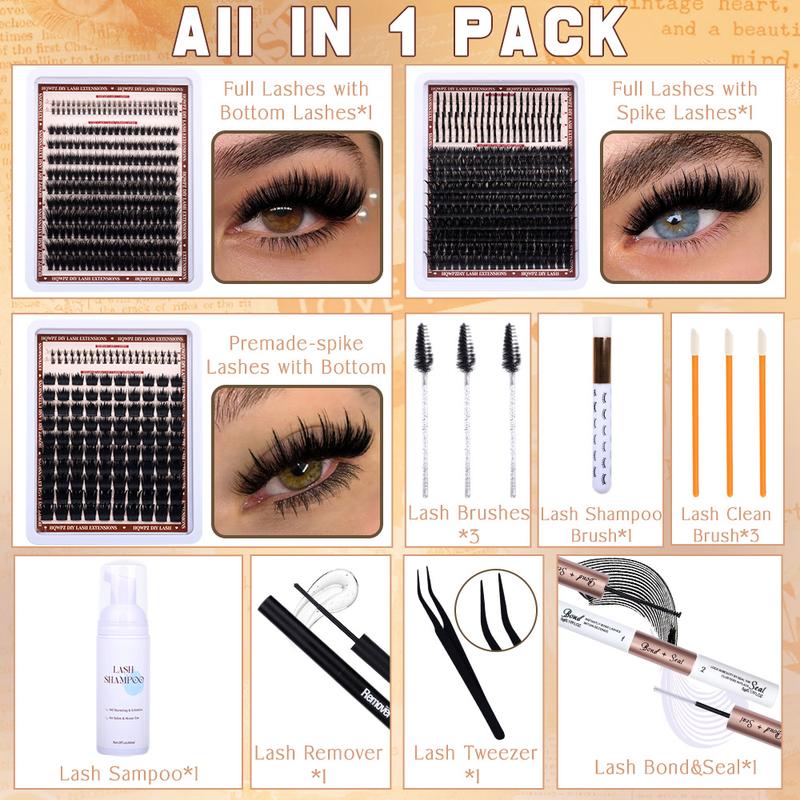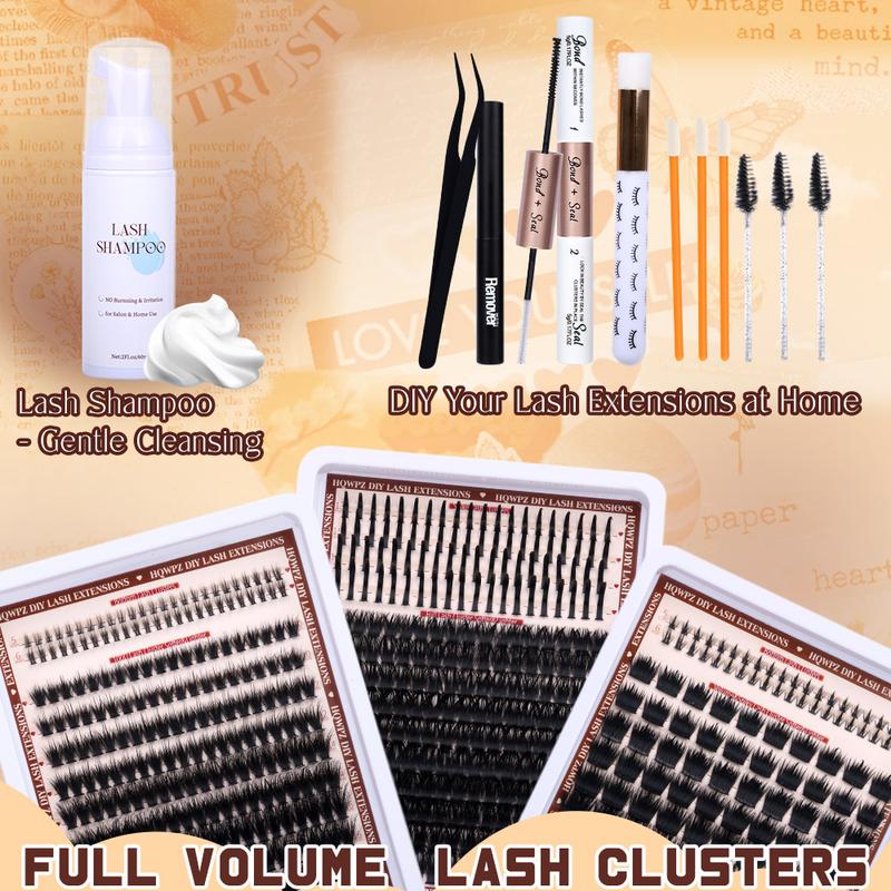 Kit Contains:ย Lash Clusters, Tweezers, Lash Shampoo, Lash Brushes*3,Lash Shampoo Brush*1, Lash Clean Brushes*3, Lash Bond 4.5g๏ผ5ml/0.17fl.oz๏ผ, Lash Seal 4.2g๏ผ5ml/0.17fl.oz๏ผ,Lash remover 4.5g(4.5ml/0.16fl.oz)