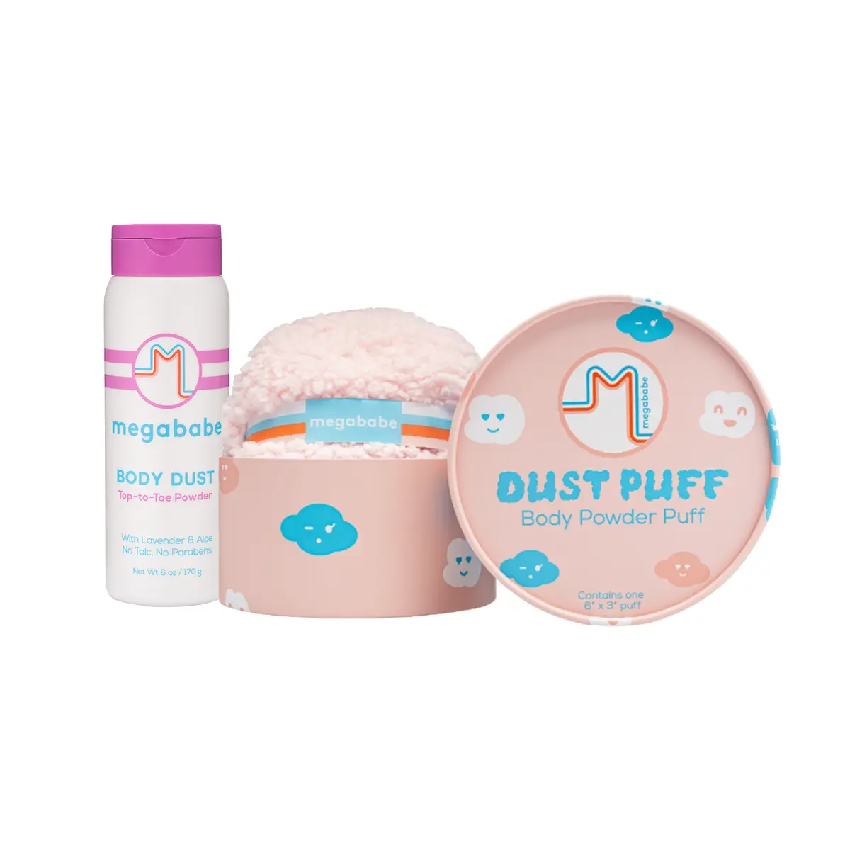 Megababe Body Dust Powder & Dust Puff Applicator Set | Talc-Free Sweat-Absorbing Body Powder (6 oz)