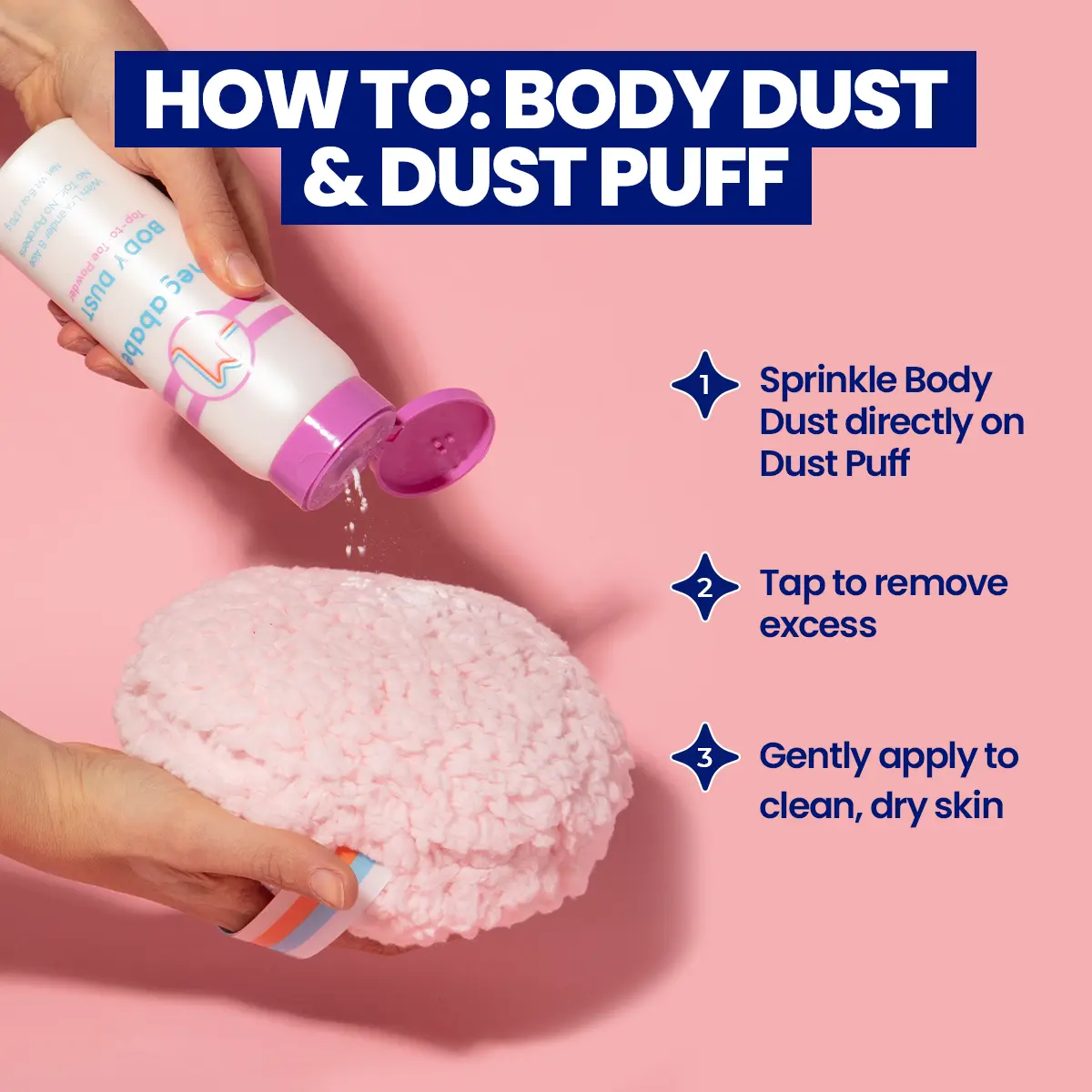 Protect against body sweat head-to-toe with Dust Duo! This sweat-stopping bundle includes Body Dust and Dust Puff for an easy, less-messy powder experience. Body Dust, our natural talc-free powders, absorb moisture in an instant to keep skin and clothes dry. Dust Puff, an oversized, cloud-soft puff, is the perfect tool to quickly and evenly apply your powder. Dust Puff’s truly jumbo size and snug hand strap make it easy to tackle your sweatiest, hardest-to-reach spots. Best of all, Dust Puff’s FSC-certified cardboard case does double duty as Puff storage and a built-in application hack — sprinkle your powder in the bottom and your Puff is always ready to go! Dust Duo is perfect for dusting your chest, torso, back, butt, feet — wherever body sweat is an issue. Contains one 6” x 3” puff & your choice of one 6 oz / 170 grams bottle of Body Dust