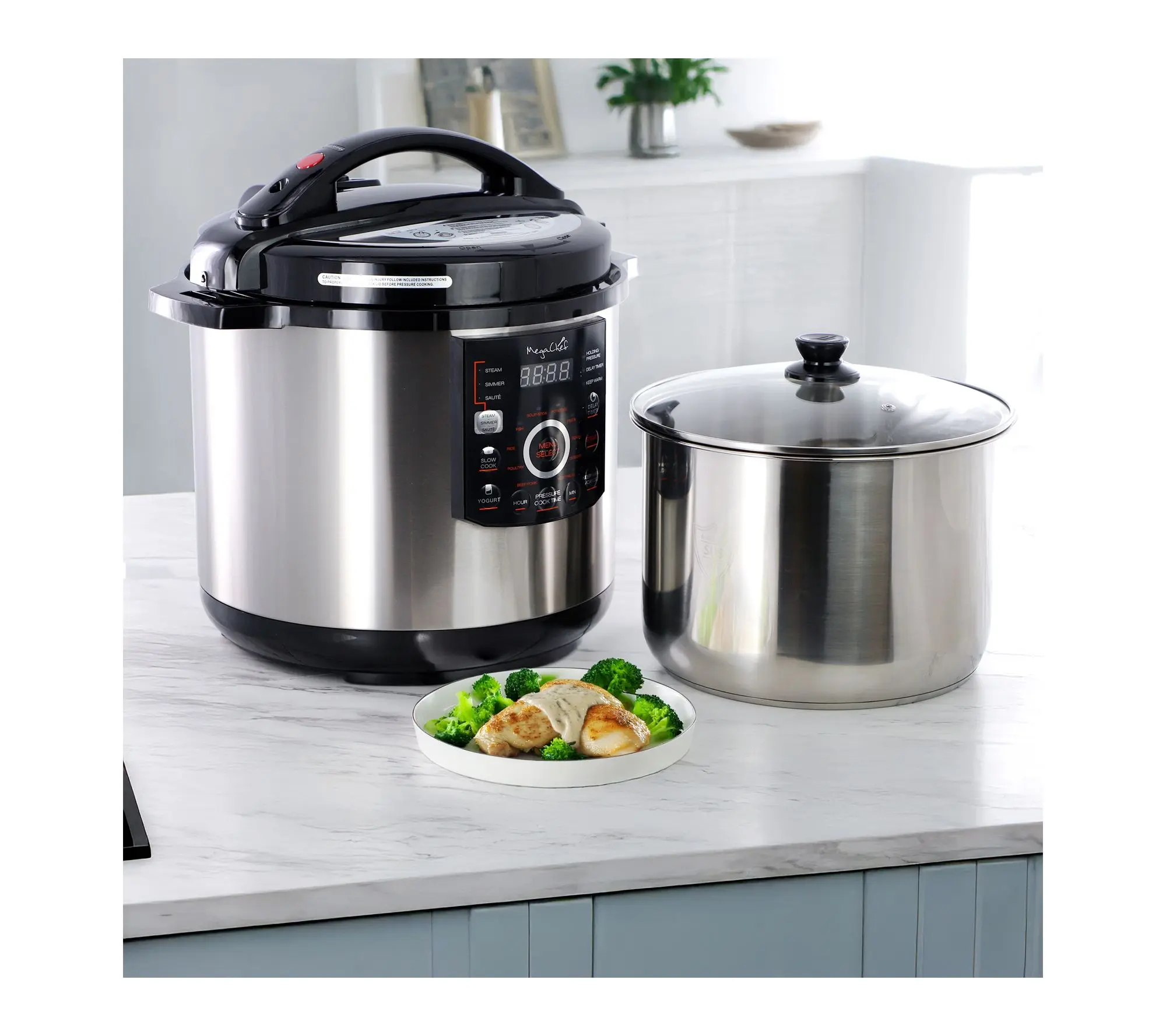 Whip up hearty weeknight dinners, effortless meal prep, or indulgent weekend roasts with this digital pressure cooker. With spacious capacity, 15 presets, and a see-through glass lid for easy monitoring, you can slow cook chilies or speed up stews -- leaving more time for what matters most. From Megachef.