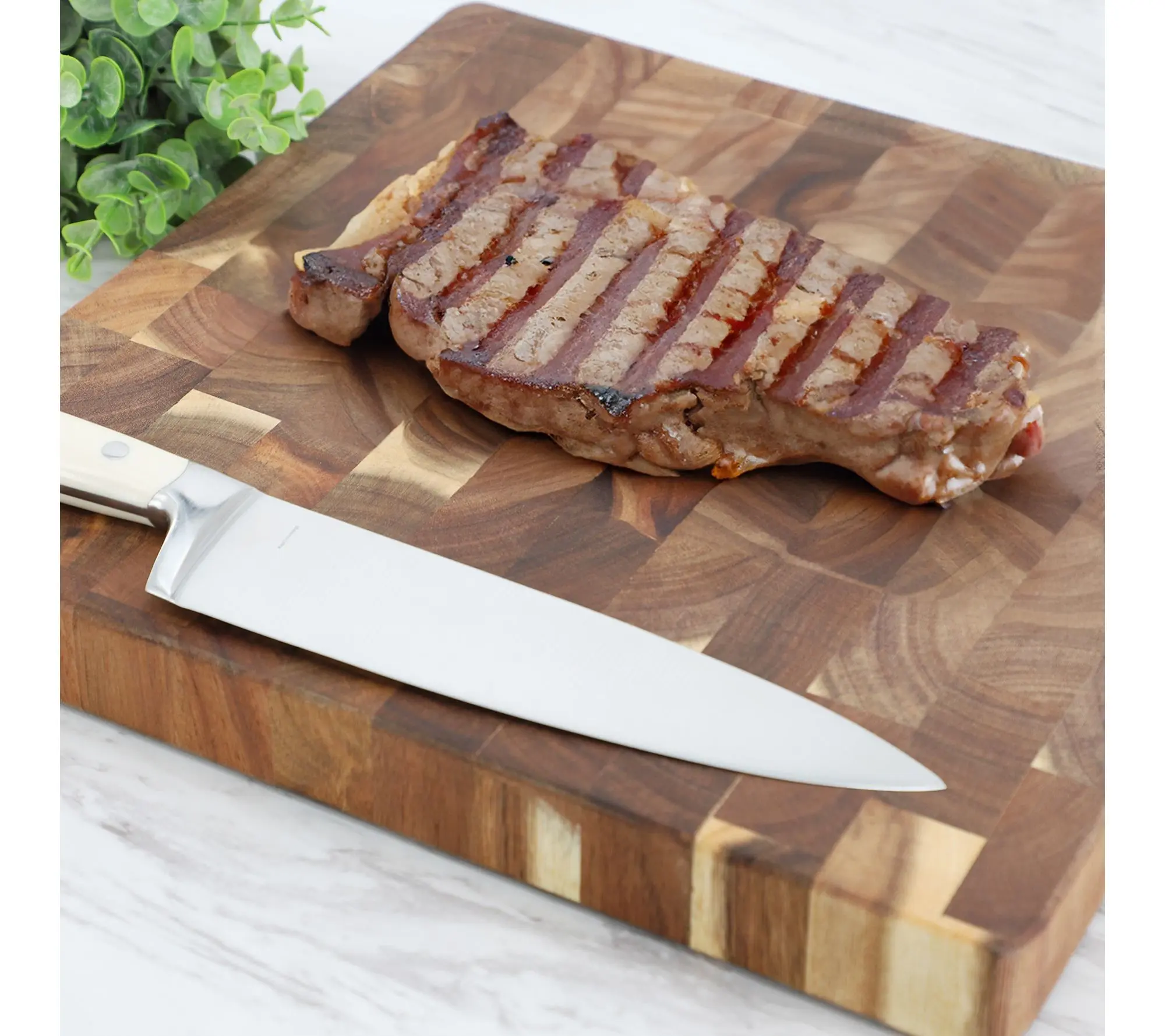 Whether you're prepping veggies for a family dinner or slicing meats for a weekend feast, this acacia wood cutting board offers a spacious, sturdy surface that makes every chop and slice feel effortless. The rich wood tones and rounded edges add a touch of style to your kitchen, while its thick square design stands up to everyday use. From MegaChef.