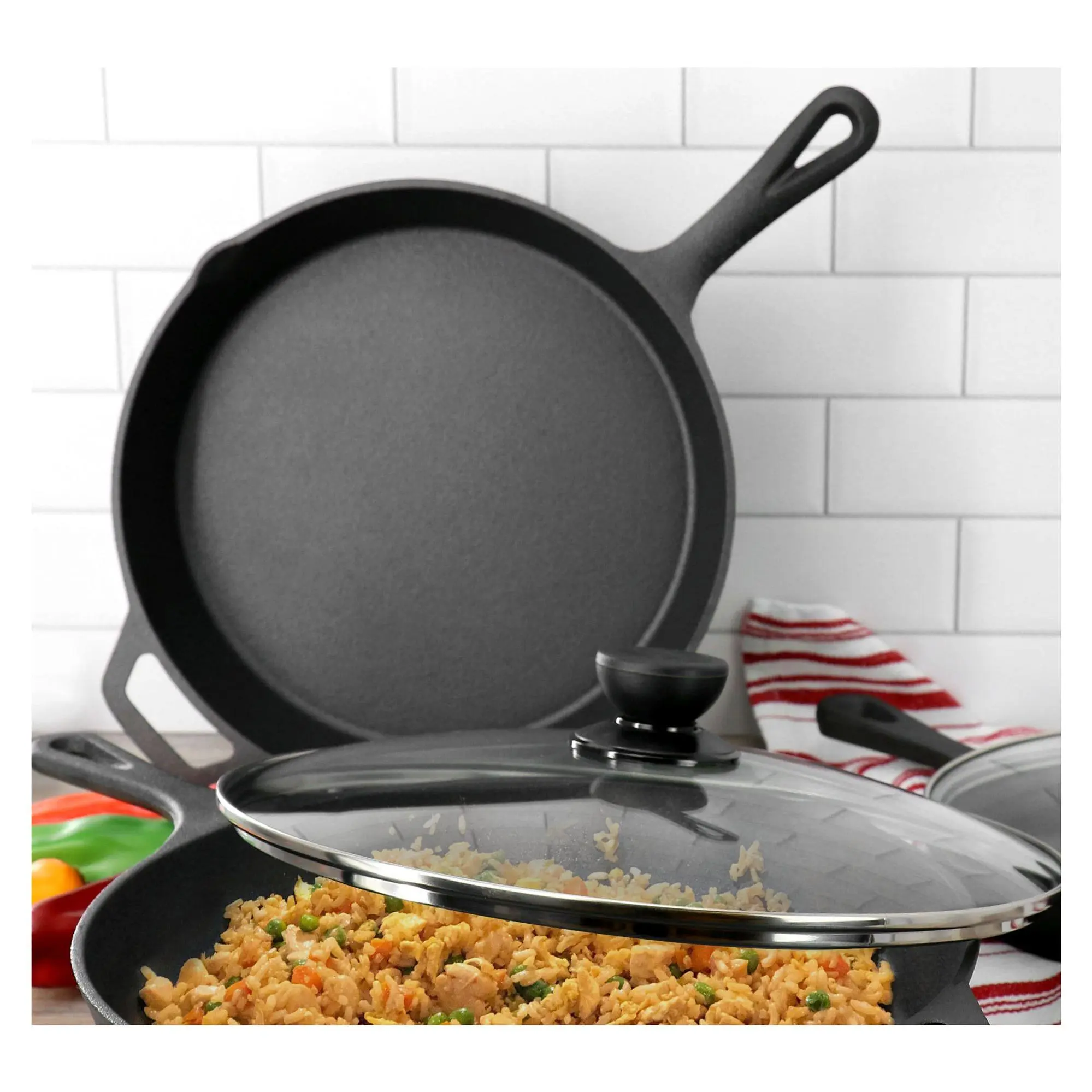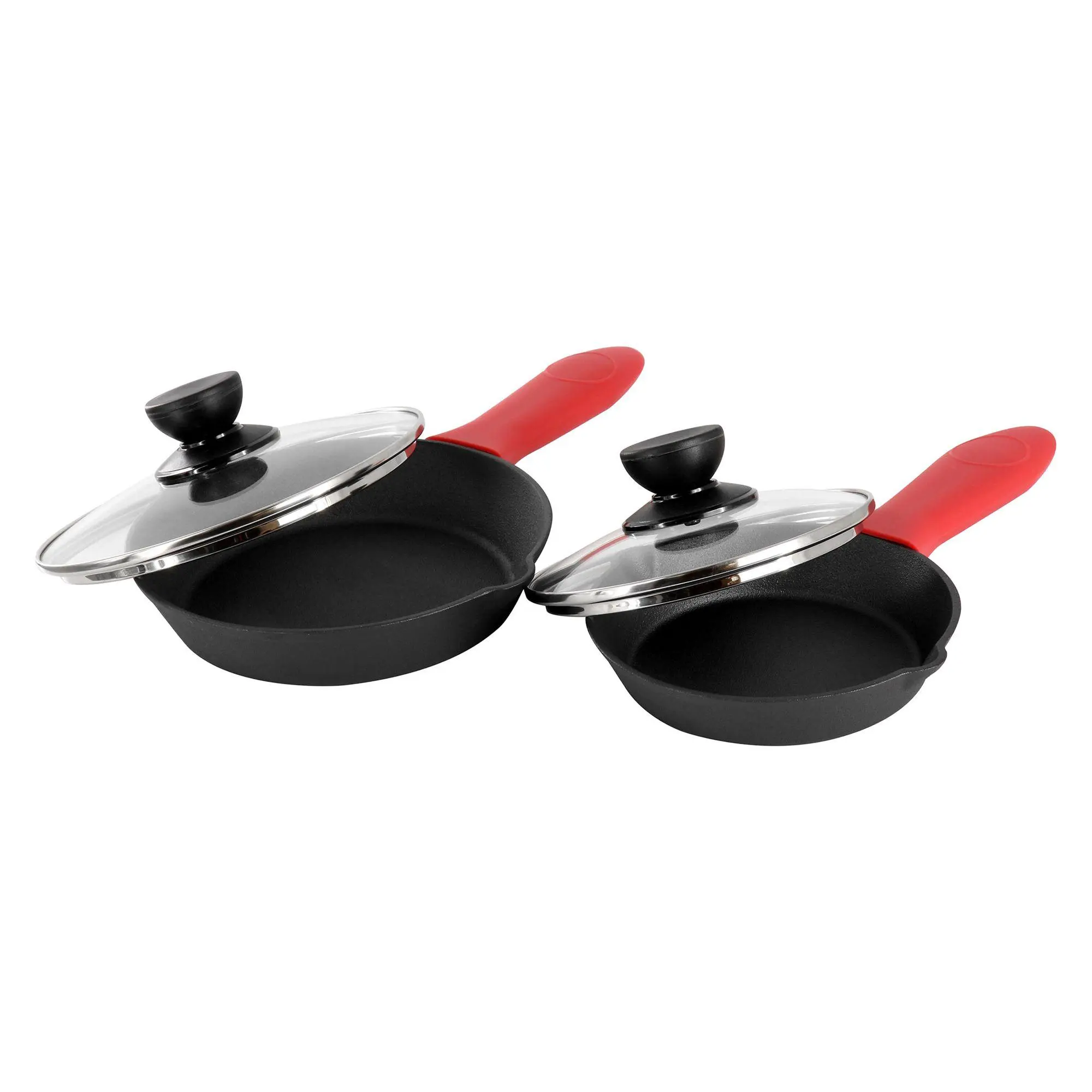 ·Includes 12" skillet, 10" skillet, 8" skillet, 6" skillet, four tempered glass lids, four silicone holders, two scrapers